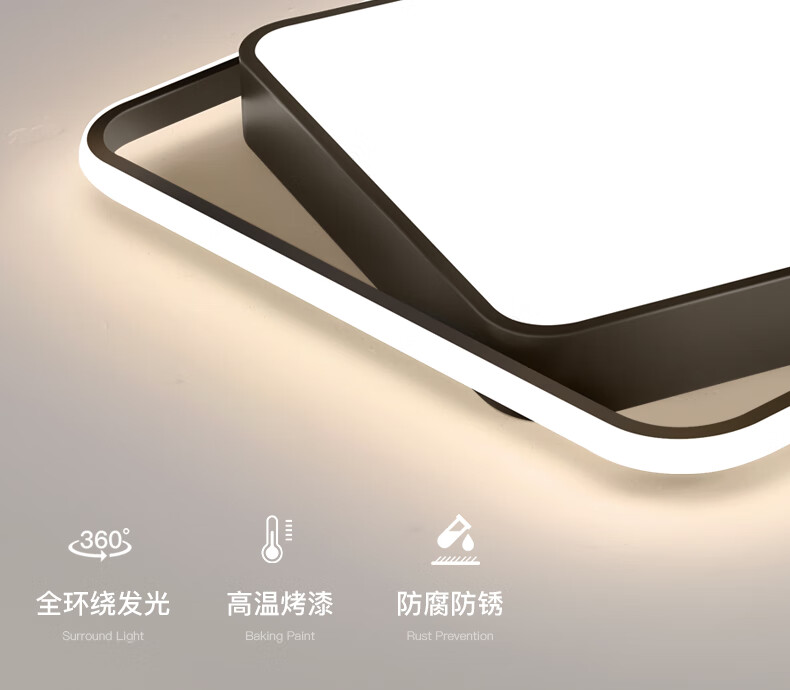 倔强大师优质铁艺+亚克力单色白光吸顶灯 36瓦 单光环 正方形 黑色 尺寸:500*500*80 自营