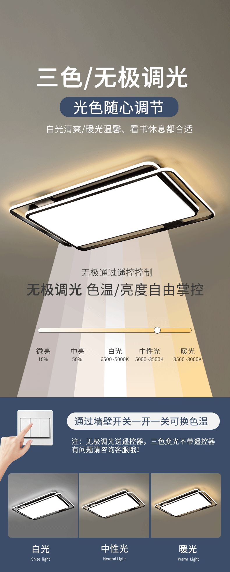 倔强大师优质铁艺+亚克力小米/小爱语音控制吸顶灯 双光环 圆形 黑色 尺寸:∅500x60 自营