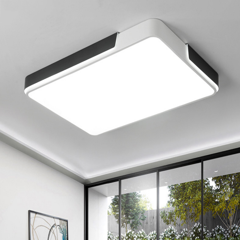 倔强大师优质铁艺+亚克力天猫精灵语音控制吸顶灯 8808长方形 黑+白 尺寸:1100*700*60 自营