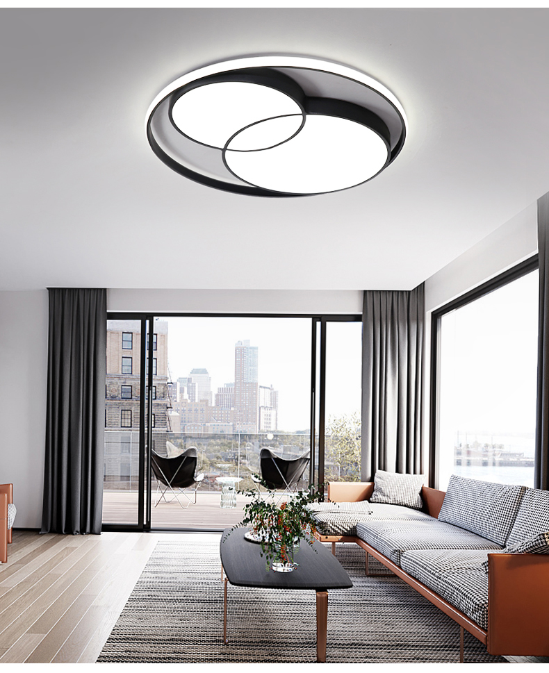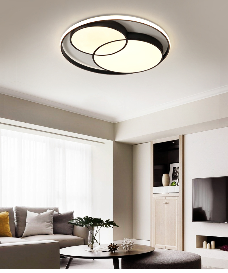 倔强大师优质铁艺+亚克力小米/小爱语音控制吸顶灯 光环双圈 黑色 尺寸:∅500x80 自营