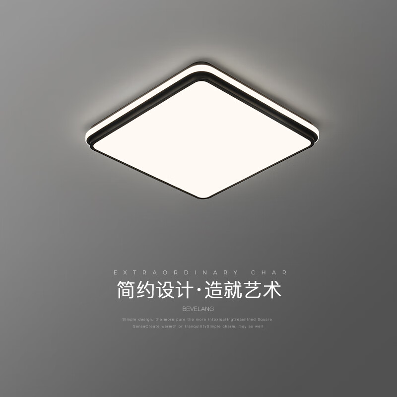 倔强大师优质铁艺+亚克力无极调光吸顶灯 48瓦*2 光环810正方形 黑色 尺寸:600*600*60 自营