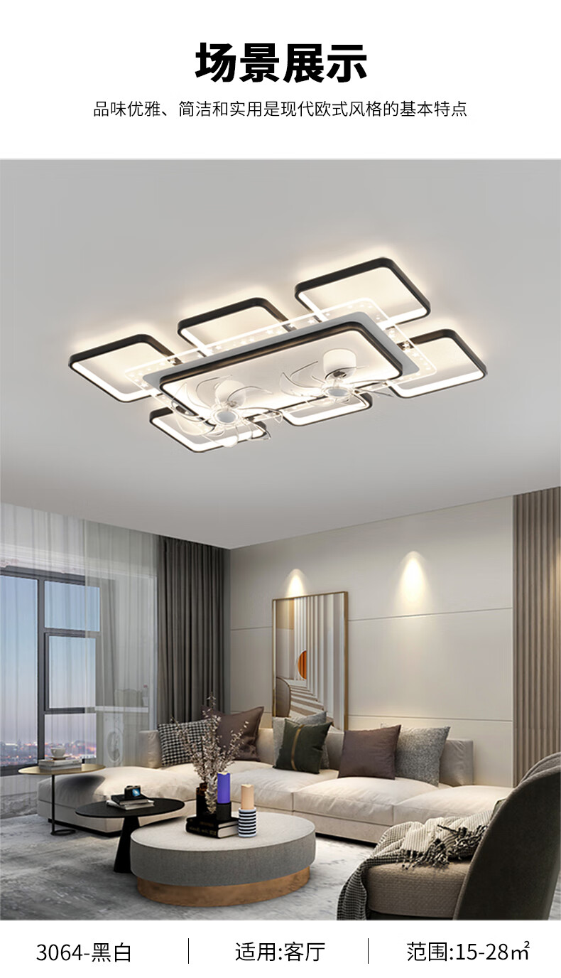 倔强大师直径42寸隐形风扇灯 36瓦*2 三色变光遥控器 颜色:黑色 功能:蓝牙 材质:优质铁艺 自营