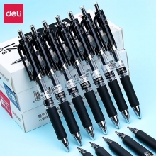 得力(deli)中性笔按动签字笔水笔 黑色按压碳素水笔 圆珠水性笔 办公用品批发 学生文具 黑色0.5mm 12支装 33388