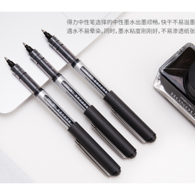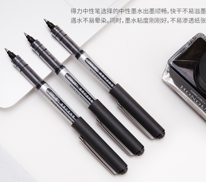 得力(deli)中性笔直液式走珠笔速干水性笔0.5mm签字笔商务办公用品 黑色 经典款 12支装 自营