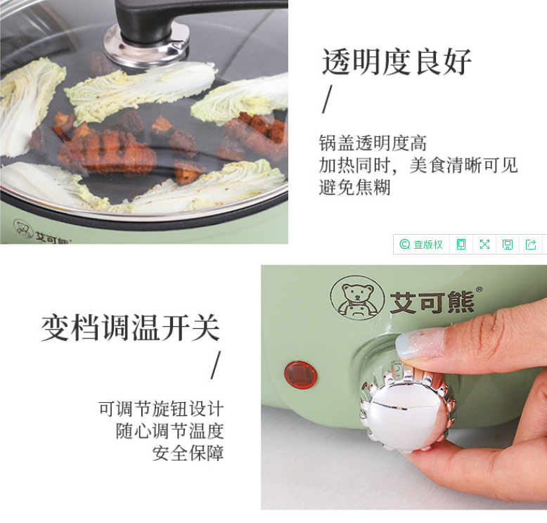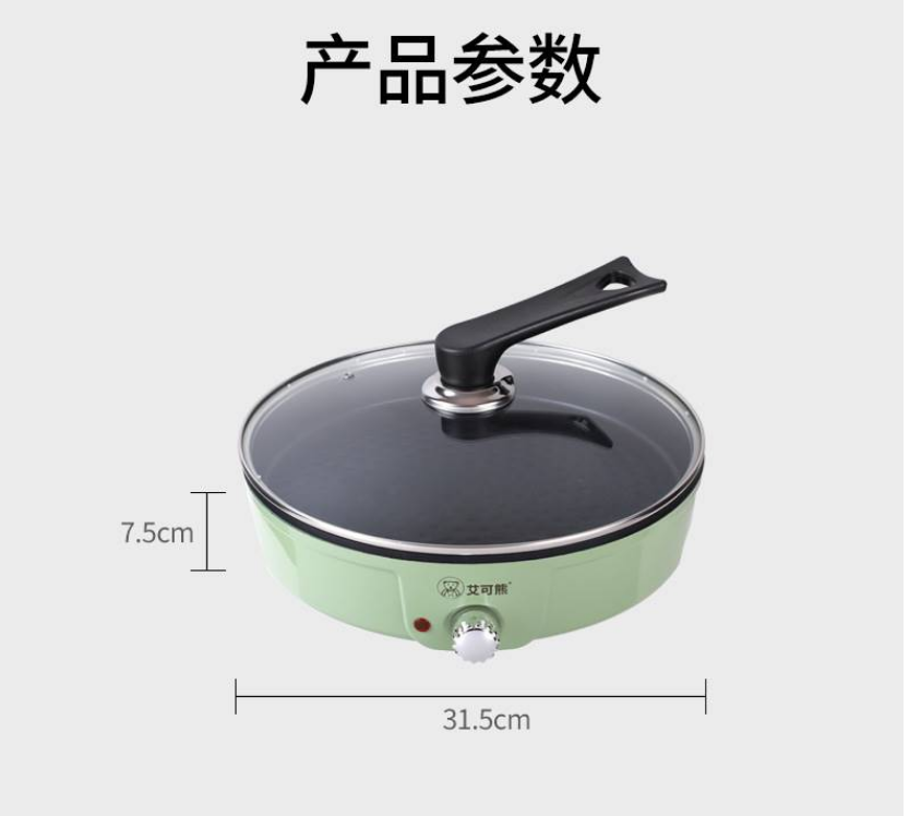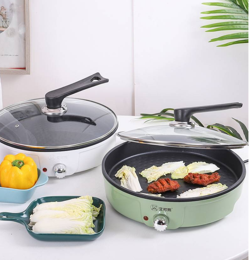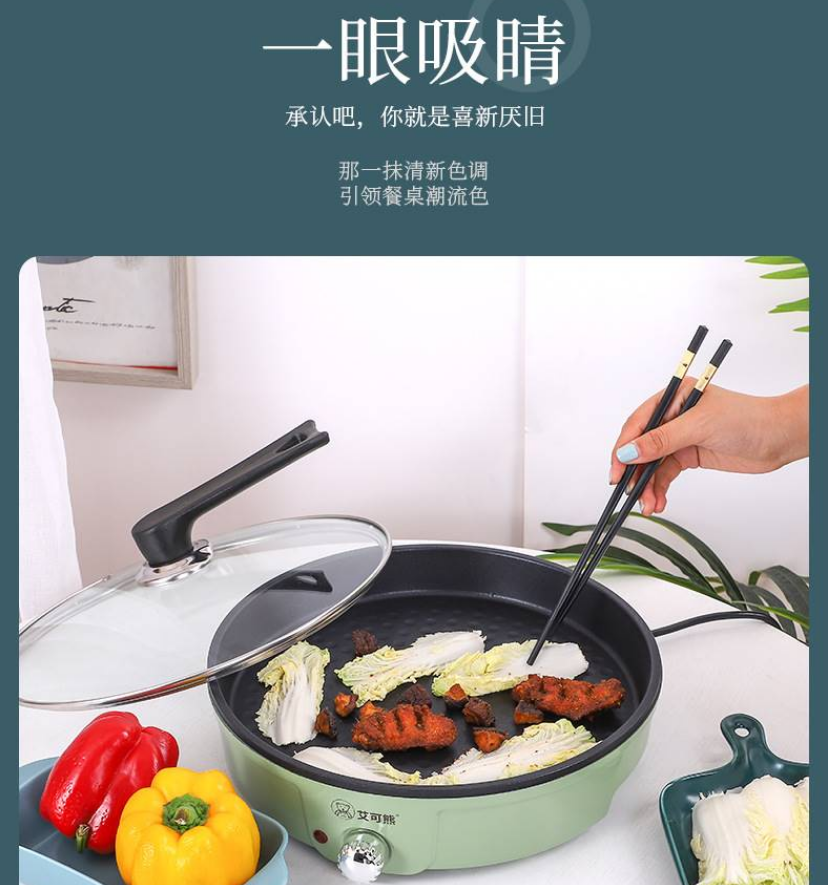 艾可熊艾可熊涮烤一体电煎锅电烤锅多功能电火锅煮家用无油烟锅慧 绿、煎烤锅 自营