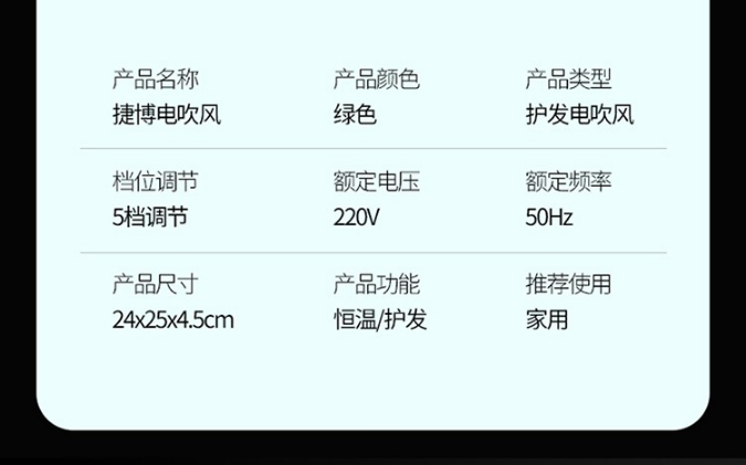 商品名称:捷博2700大号吹风机 商品毛重:1.0kg 商品产地:中国大陆 题材:其他 适用季节:四季通用 风格:中国风 适用场景:其他