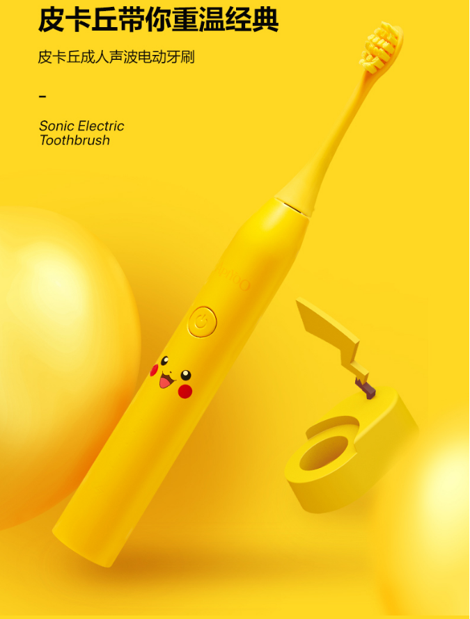 商品名称:ApiYoo宝可梦电动牙刷 商品毛重:0.58kg 商品产地:中国大陆 刷头工艺:无铜片植毛技术特色:IP定制款 噪音:46-65dB 类型:声波震动牙刷 续航时间:15-45天 充电方式:感应 充电频率:33001-38000Hz 适用人群:礼品人群,成人 清洁类型:亮白,敏感,抛光 防水等级:IPX7 强度档数:三档以上