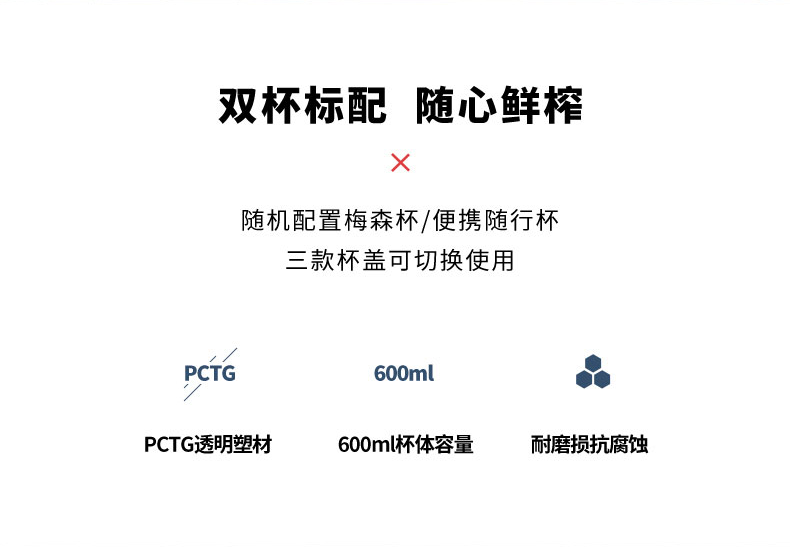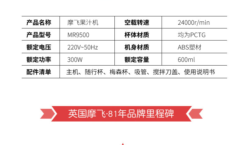 摩飞(Morphyrichards)家用榨汁机原汁机便携式果汁机 迷你料理杯 搅拌机小型MR9500 自营