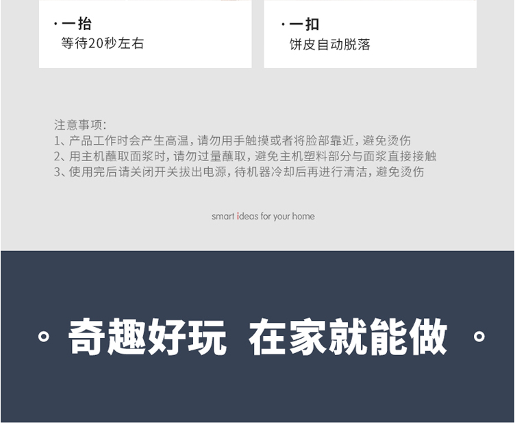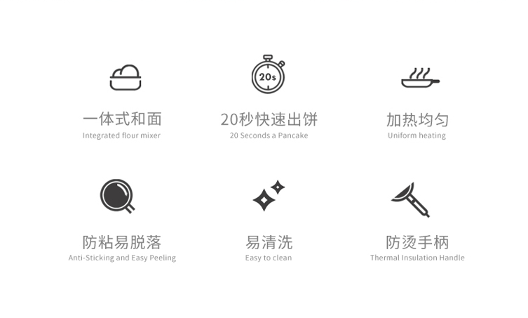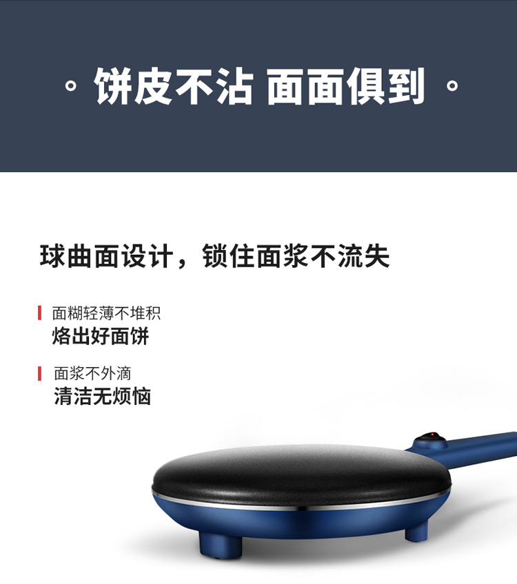 商品名称:摩飞电器MR1266 商品毛重:2.34kg 商品产地:中国大陆 操控方式:机械式 类别:薄饼机 烤盘直径:25cm以下 特色功能:速热,自动恒温,春饼/薄饼 功率:1000W及以下 清洗方式:不可拆洗 烤盘深度:20mm以下 烤盘形状:圆盘 火力调节:不可调节