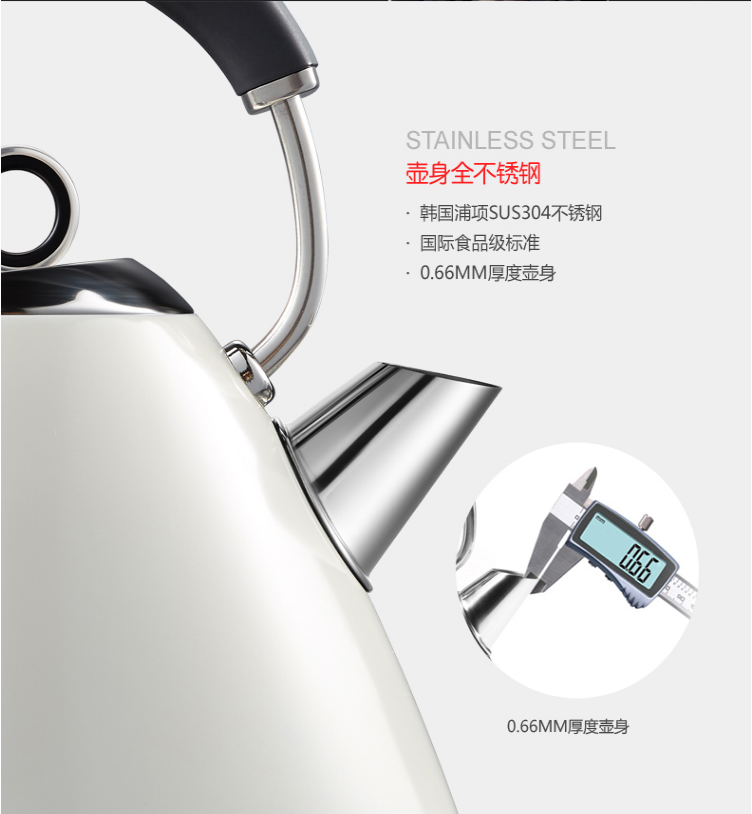 品名称:摩飞电器MR7076A 商品毛重:2.31kg商品产地:中国大陆 类型:电热水壶 材质:单层不锈钢
