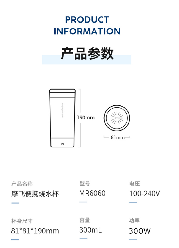 商品名称:摩飞电器MR6060 商品毛重:0.82kg 商品产地:中国大陆 类型:电热水杯 特征特质:保温 容量:1L及以下 功能:自动断电