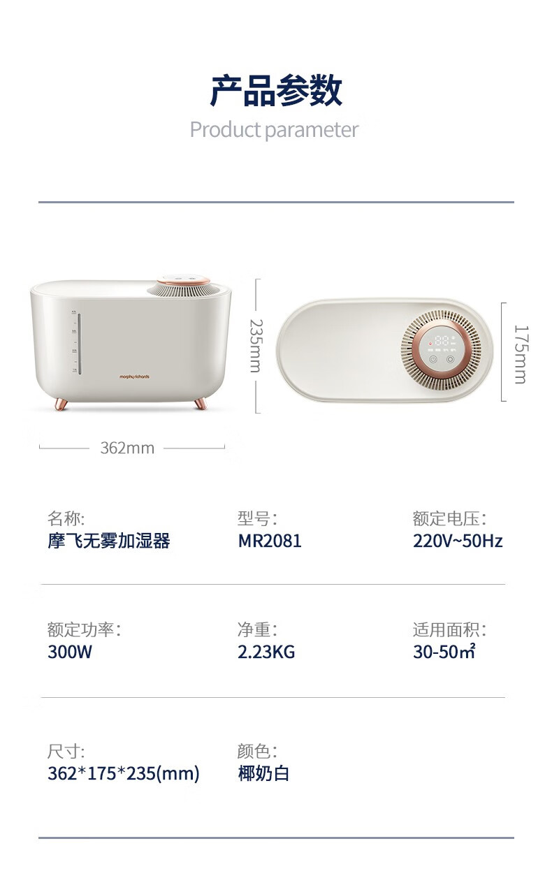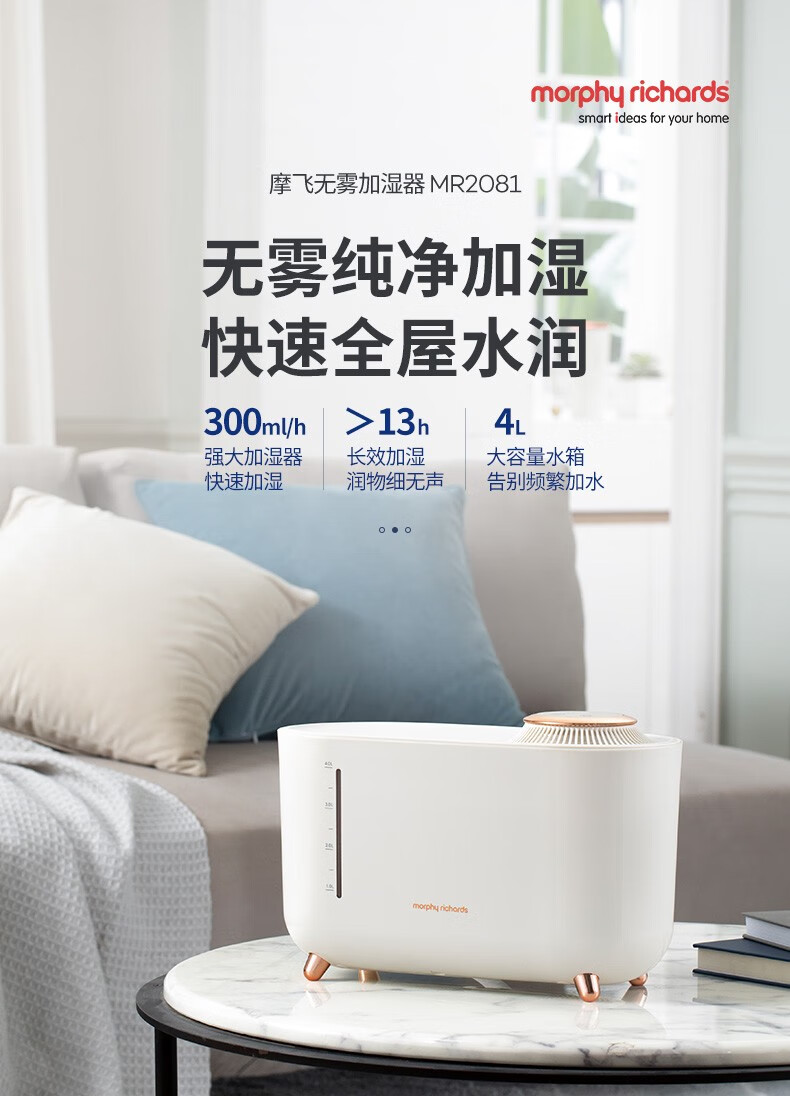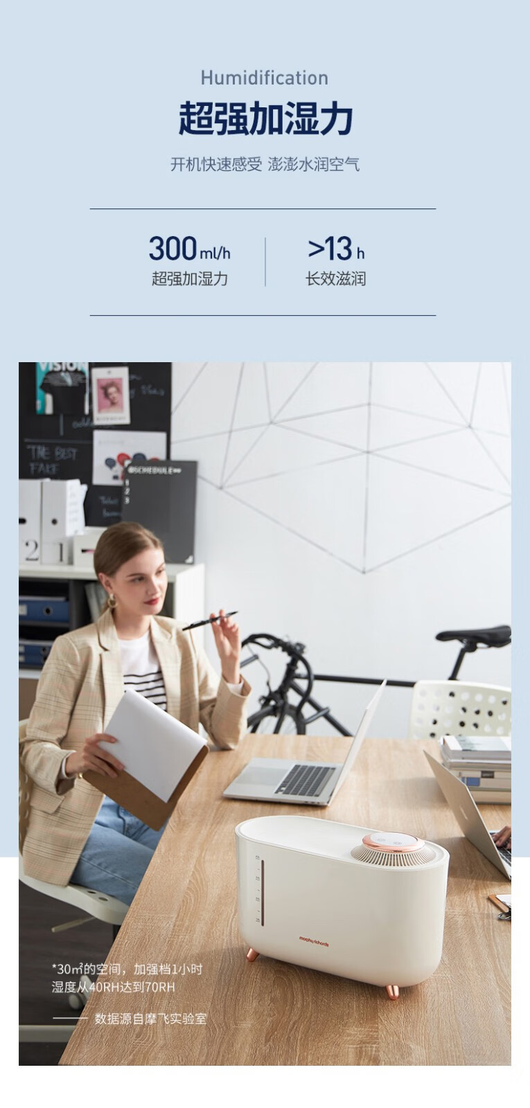 摩飞电器 无雾加湿器 大容量上加水 蒸发式 恒湿数显 空气增湿 家用办公室婴儿卧室 遥控升级版 MR2081【京7仓速发】 自营