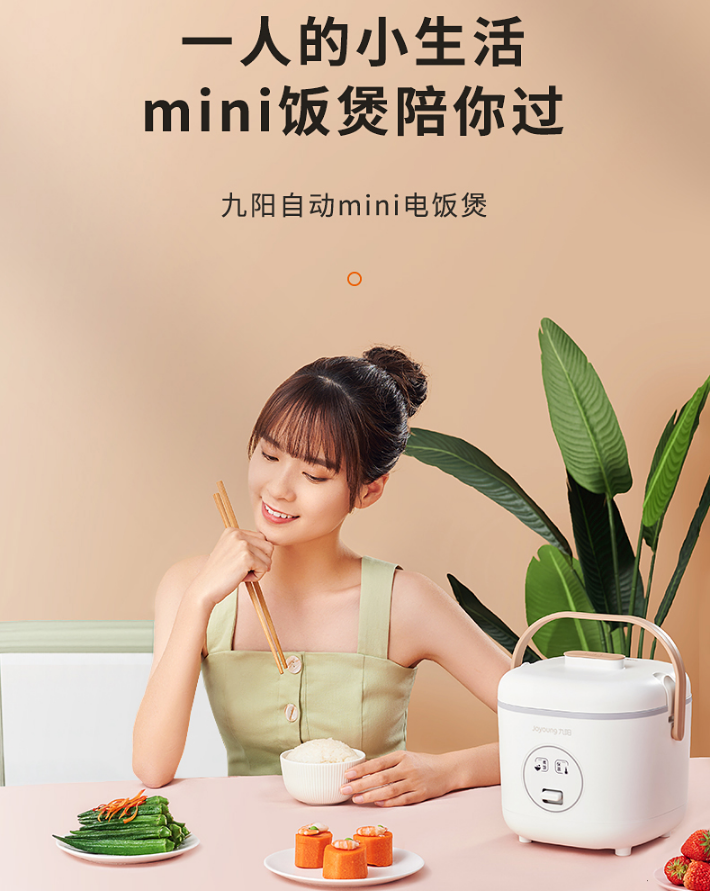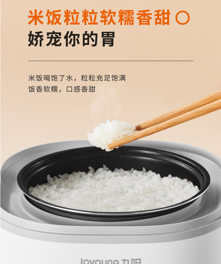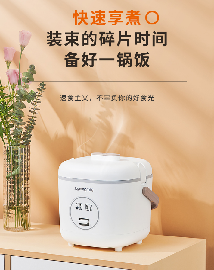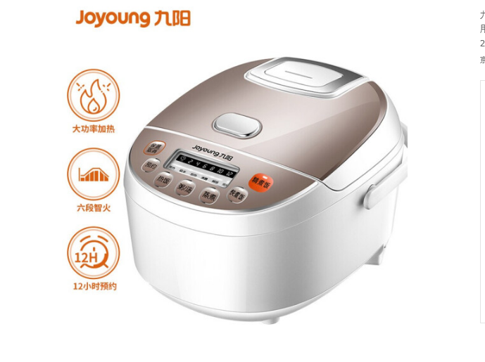 商品名称:九阳(Joyoung)电饭煲家用小电饭锅煮小米饭迷你240W小功率不沾内胆宿舍小火锅 白色(3升) 商品毛重:2.11kg 货号:F-12FZ618 操控方式:按键式 容量:2.1-3L 适用人数:1-2人 加热方式:底盘加热 功能:上盖可拆洗