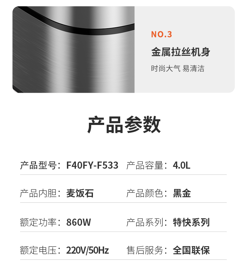 商品名称:九阳(Joyoung)电饭煲4L家用多功能电煮饭锅一键预约特快加热智能触控电饭锅 F40FY-F533 商品毛重:4.2kg 操控方式:触控式 容量:3.1-4L 适用人数:2-6人 加热方式:底盘加热 功能:快速饭,低糖饭