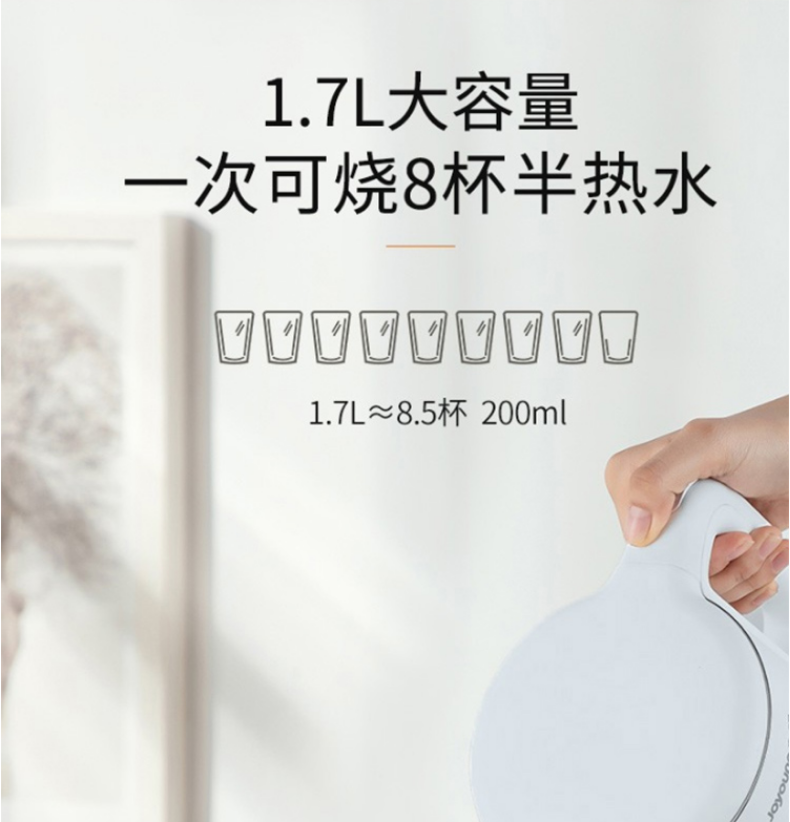商品名称:九阳(Joyoung)K17-F630热水壶烧水壶电水壶1.7L无缝内胆双层锁温防烫家用电热水壶 商品毛重:1.5kg 类型:电热 水壶容量:1.6-2L 功能:无缝内胆