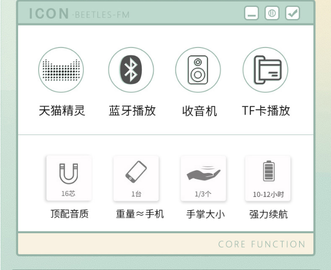 商品名称:Divoom甲壳虫 商品毛重:340.00g 商品产地:中国大陆 附加功能:收音机 类别:品质音箱 适用场景:户外