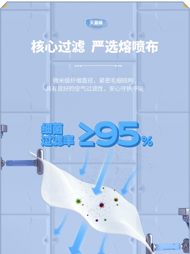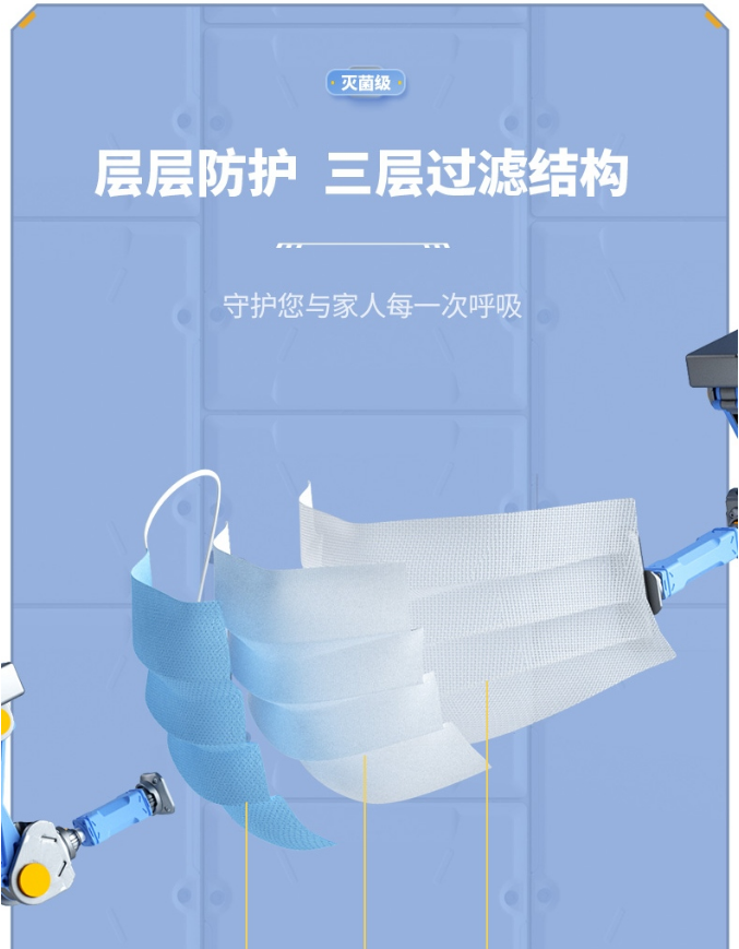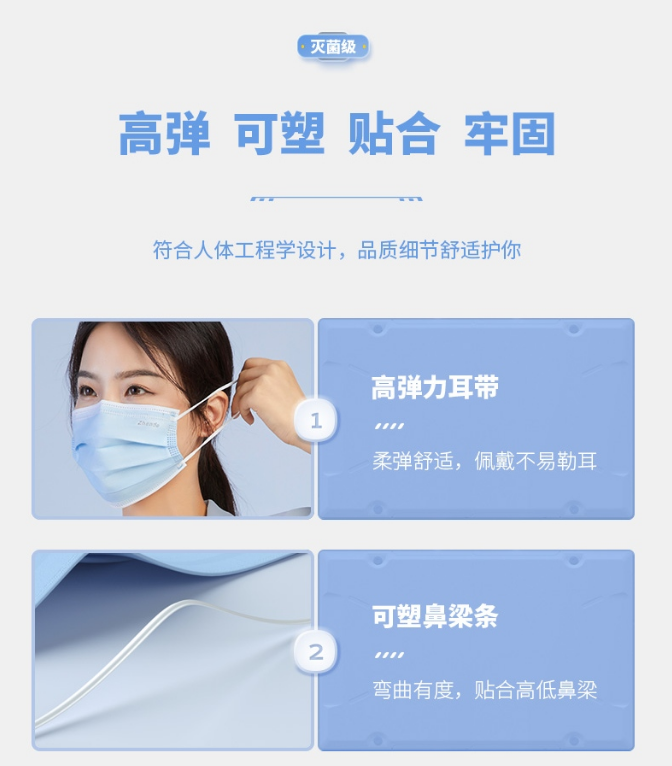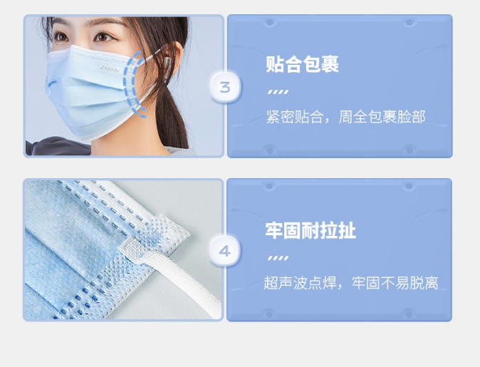 振德医疗一次性使用医用口罩纱布内层独立包装 浅蓝色(10只独立装)(纱布内层)