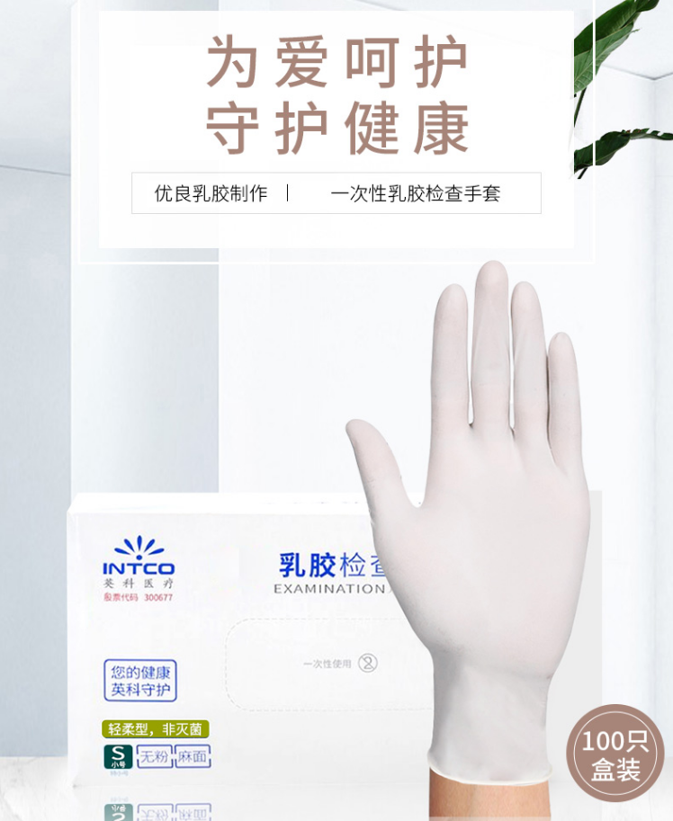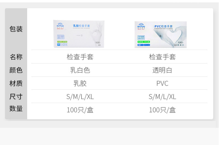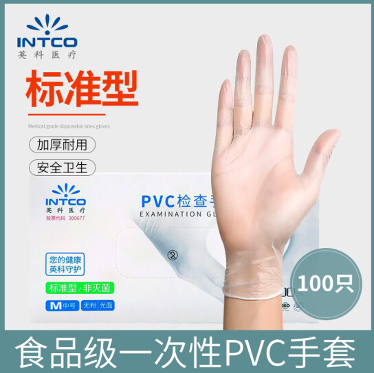 英科医疗(INTCO) 一次性PVC手套 橡胶乳胶丁腈 医生检查用食品清洁卫生劳保手套*100只 M码