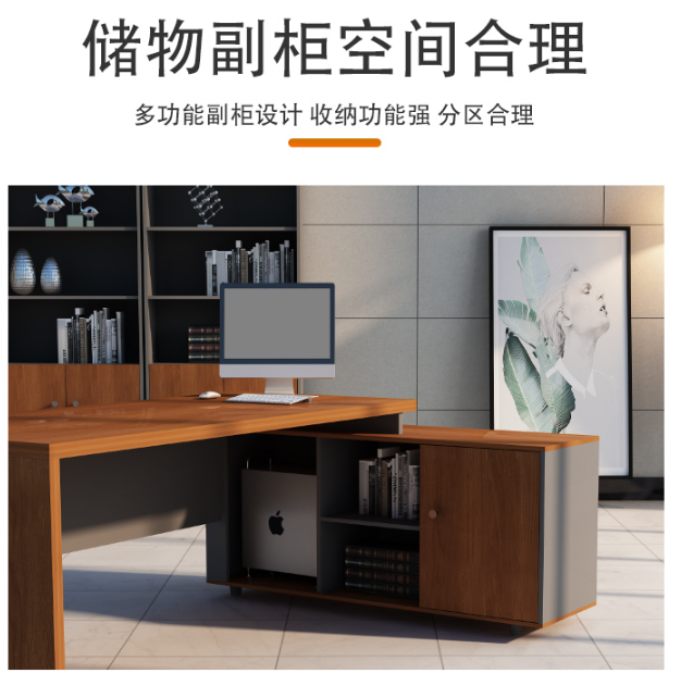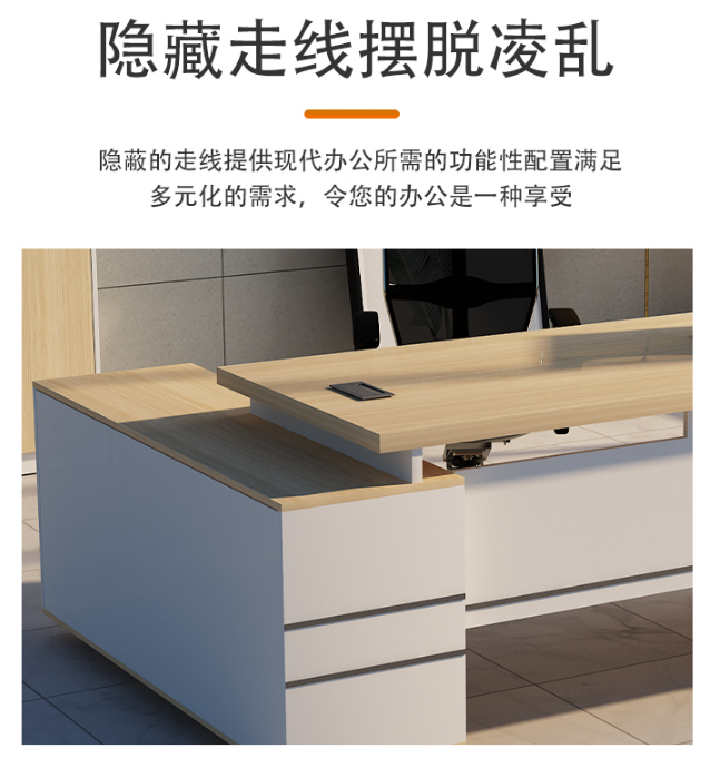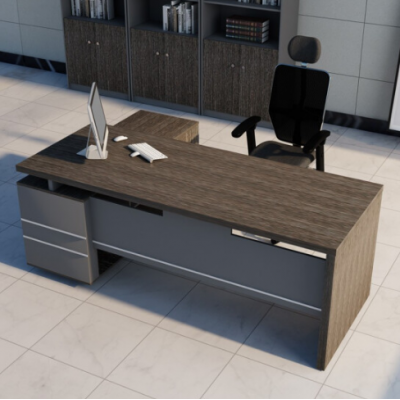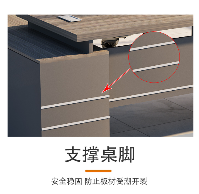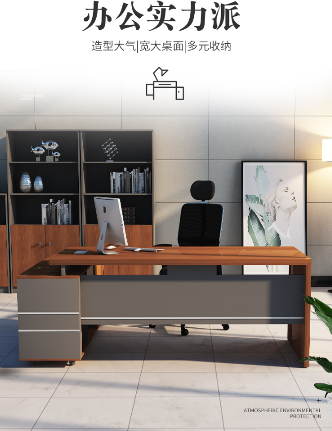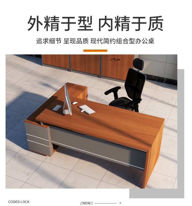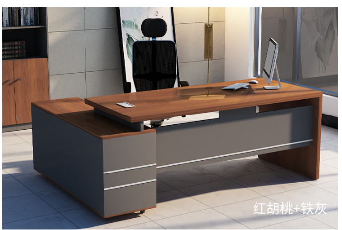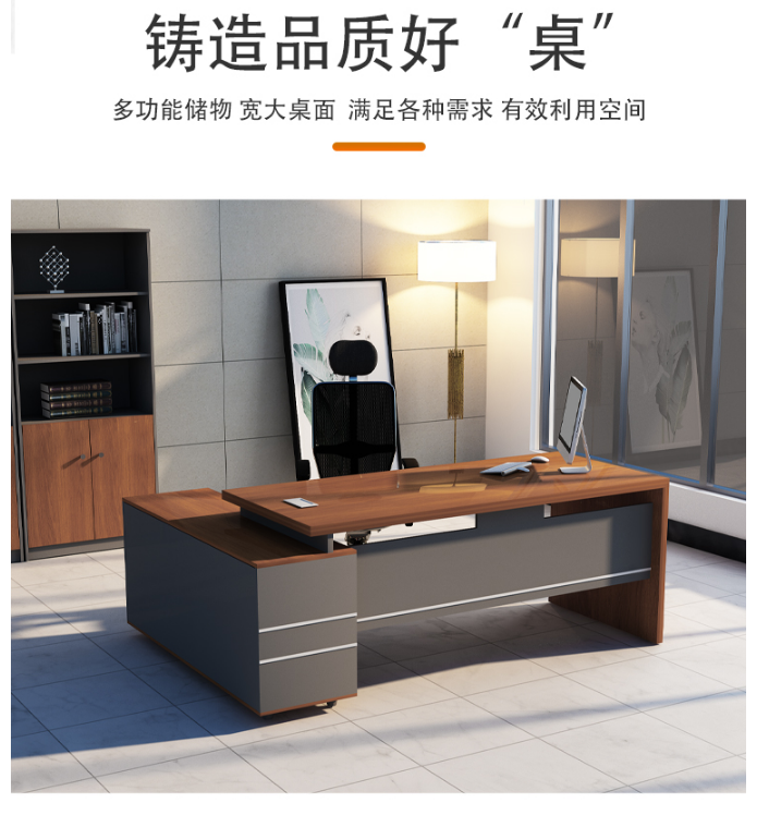 办公桌简约现代老板桌椅组合带柜电脑大班台单人经理主管职员工桌金宜轩 1.6米桌 黑橡木+铁灰 自营