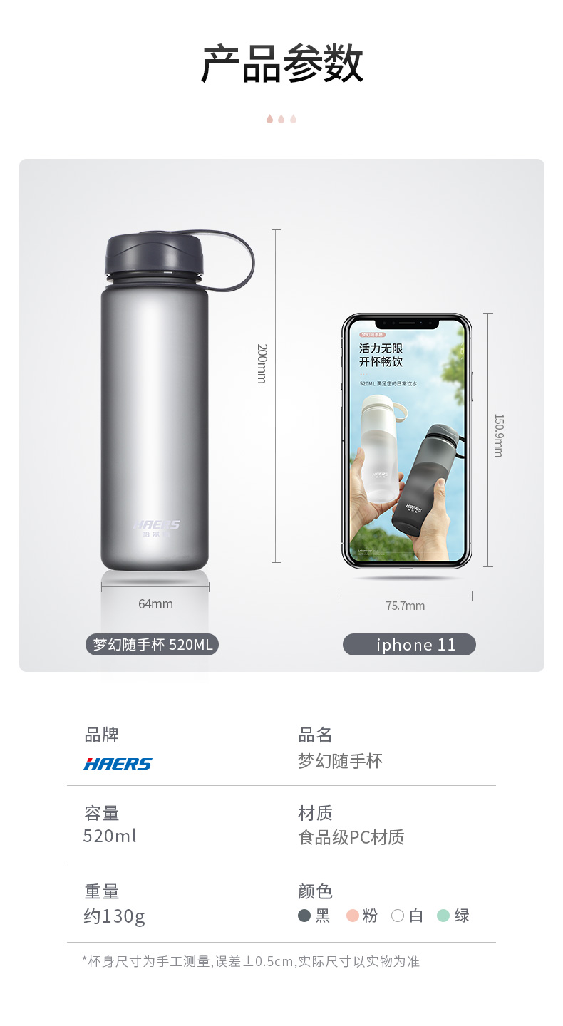哈尔斯梦幻随手杯/塑料杯运动水杯子男女简约便携太空杯学生随手杯520ml HPC-520-58 自营