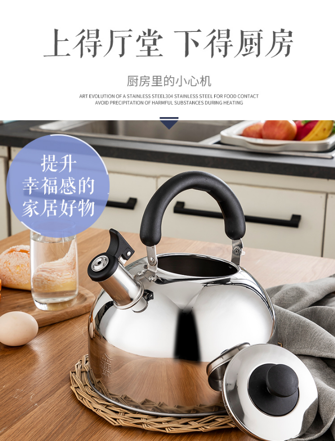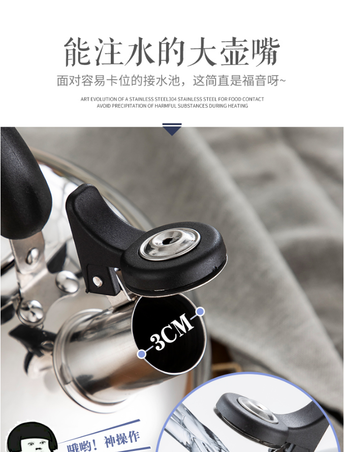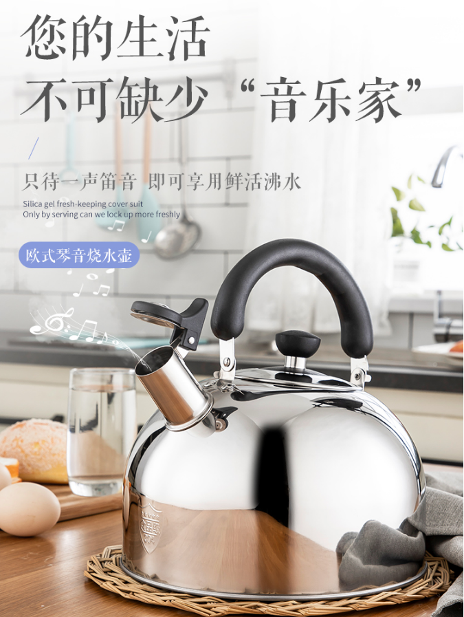 美厨(maxcook)烧水壶304不锈钢水壶 4L加厚鸣音 煤气电磁炉通用 乐厨系列 MS004Y 自营