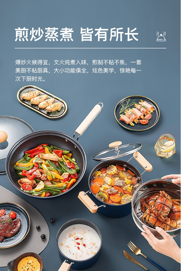 商品名称:美厨(maxcook)锅具套装炒锅不沾锅四件套耐磨耐 汤锅蒸锅奶锅配硅胶铲燃气电磁炉通用 4件套炒锅+汤锅+蒸格+炒铲MCTZ7256商品毛重:4.35kg商品产地:中国大陆类别:锅具+铲勺适用炉灶:燃气灶,电磁炉,电陶炉,煤气灶,通用规格:四件套