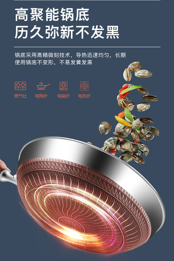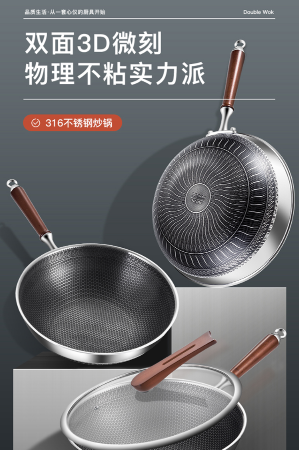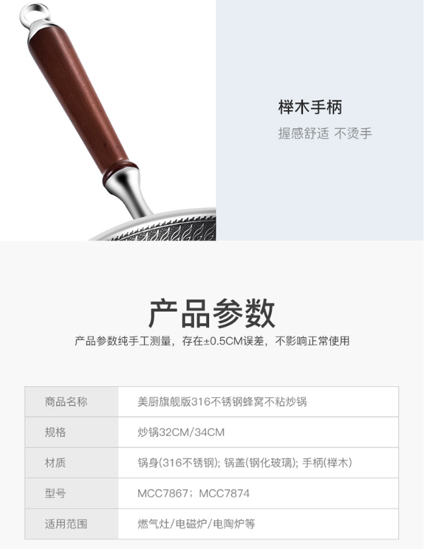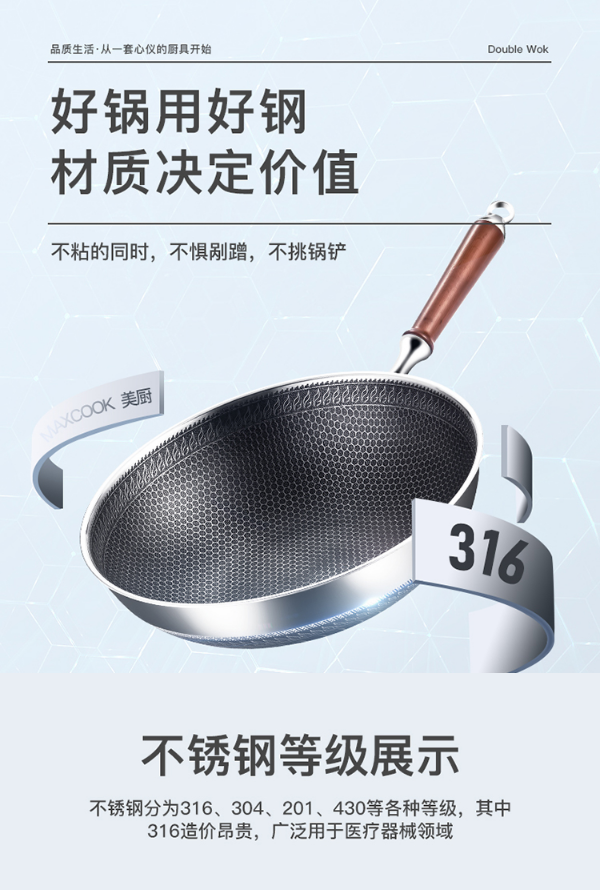 美厨(maxcook)炒锅 316不锈钢炒菜锅32cm 不粘炒锅可立盖可用不锈钢锅铲 燃气煤气灶电磁炉通用MCC7867 自营