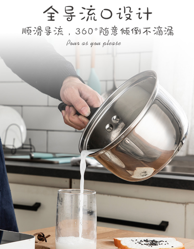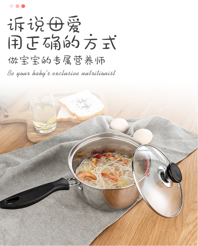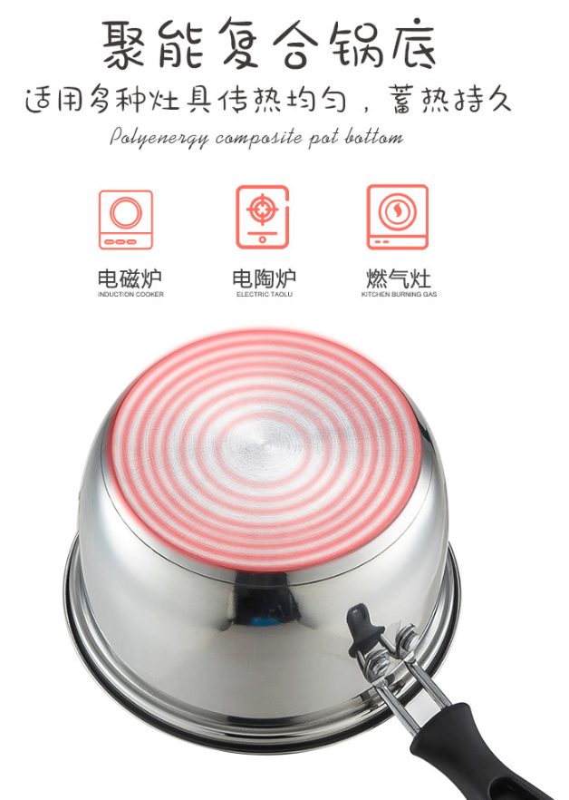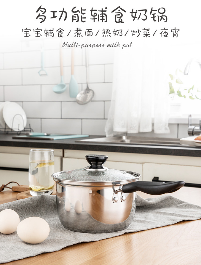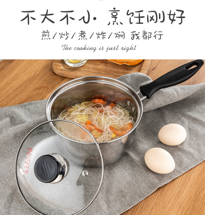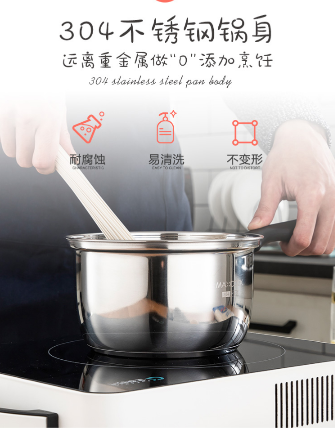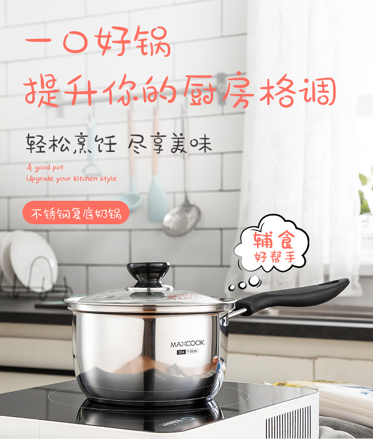 美厨(maxcook)奶锅 304不锈钢奶锅汤锅16cm 泡面煮奶辅食锅 加厚复合底 燃气炉电磁炉通用LN116 自营