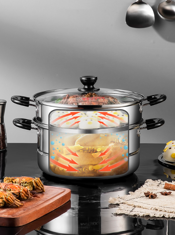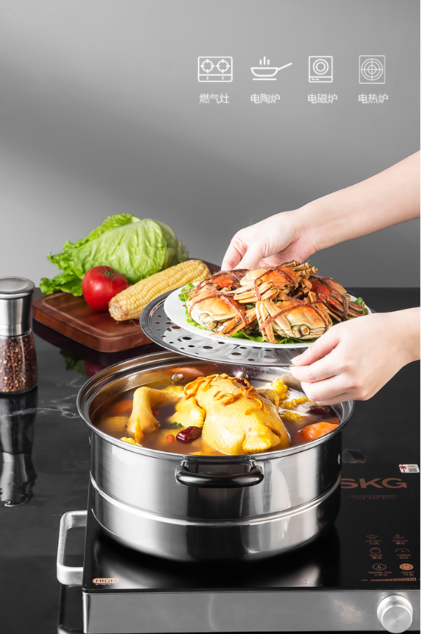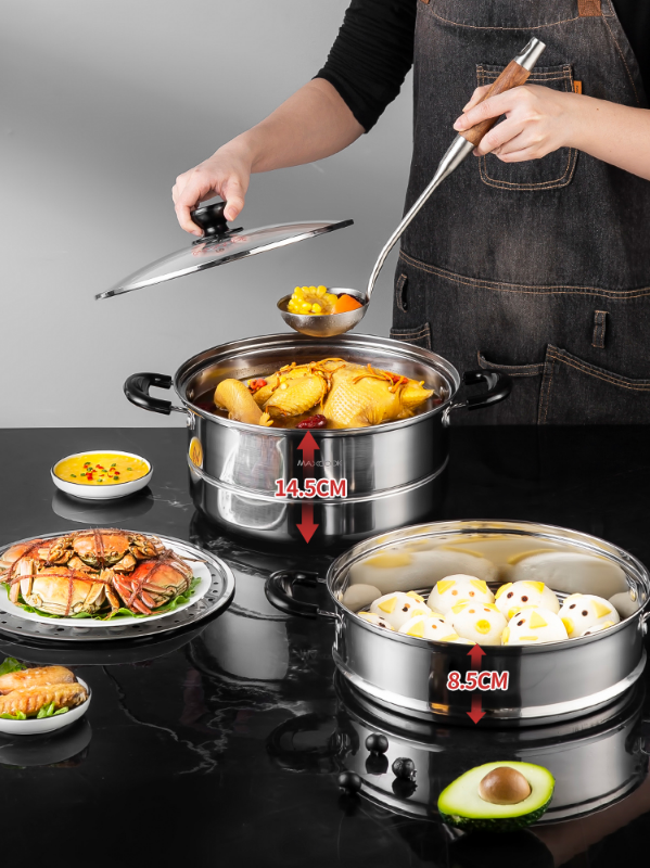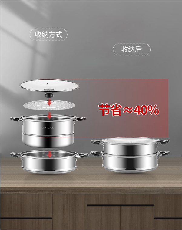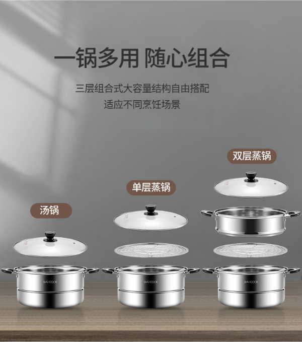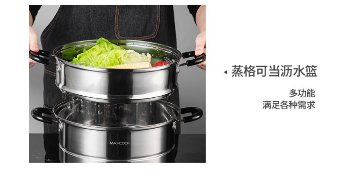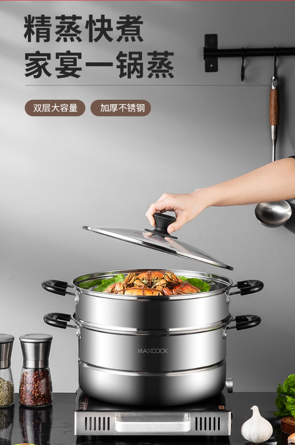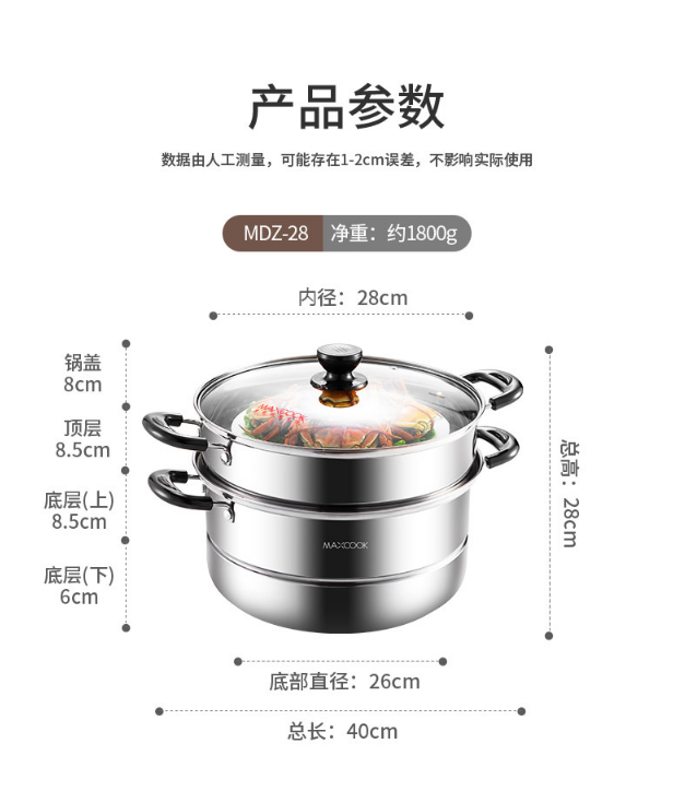 美厨(maxcook)二层蒸锅 28cm不锈钢蒸锅可蒸可煮 电磁炉燃气炉煤气灶通用MDZ-28 自营