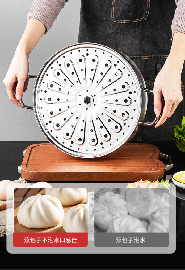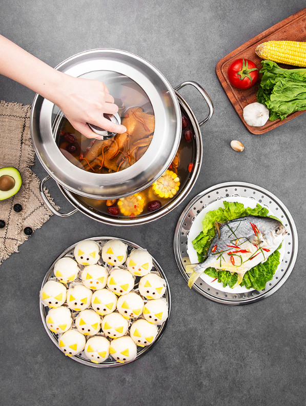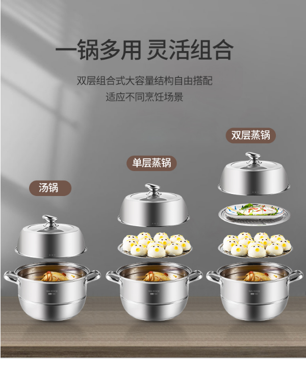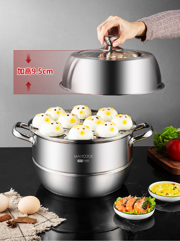 美厨(maxcook)蒸锅 304不锈钢28cm二层蒸锅 加厚复底汤蒸锅 电磁炉燃气炉通用 MCZ557 自营