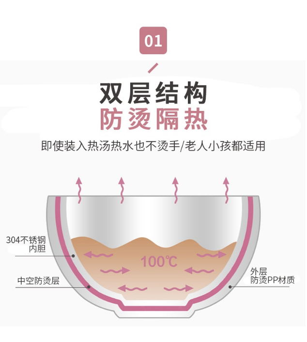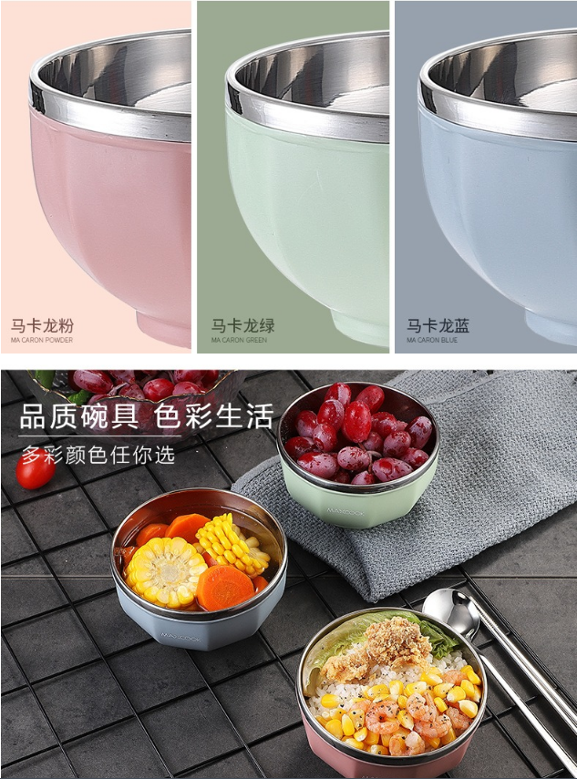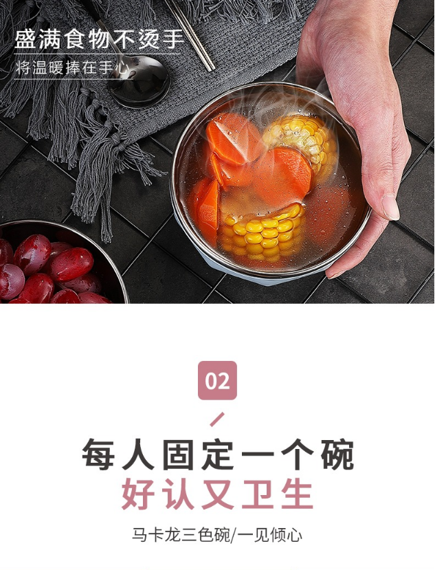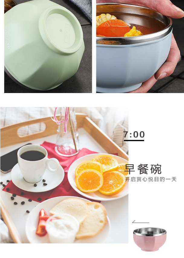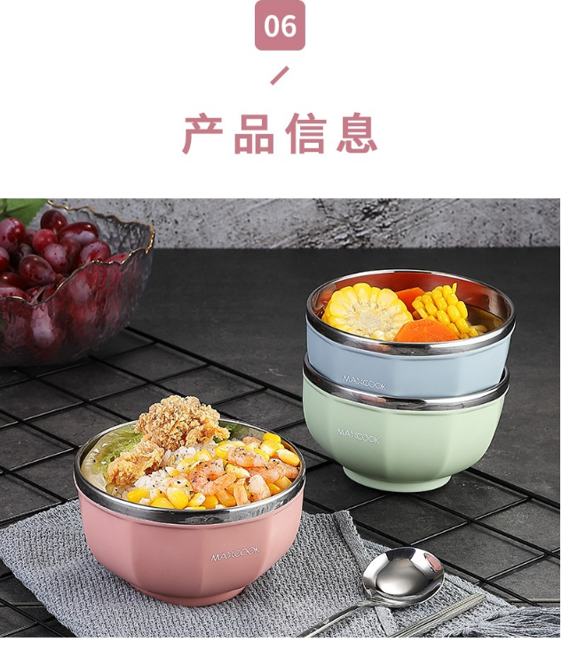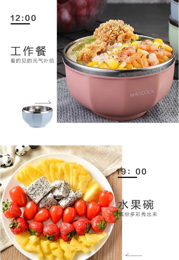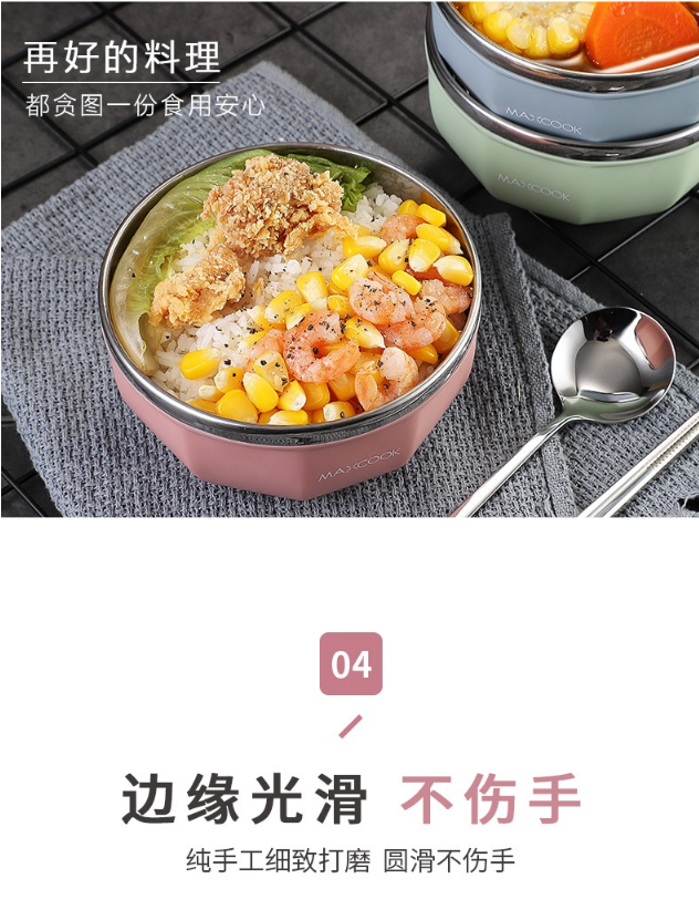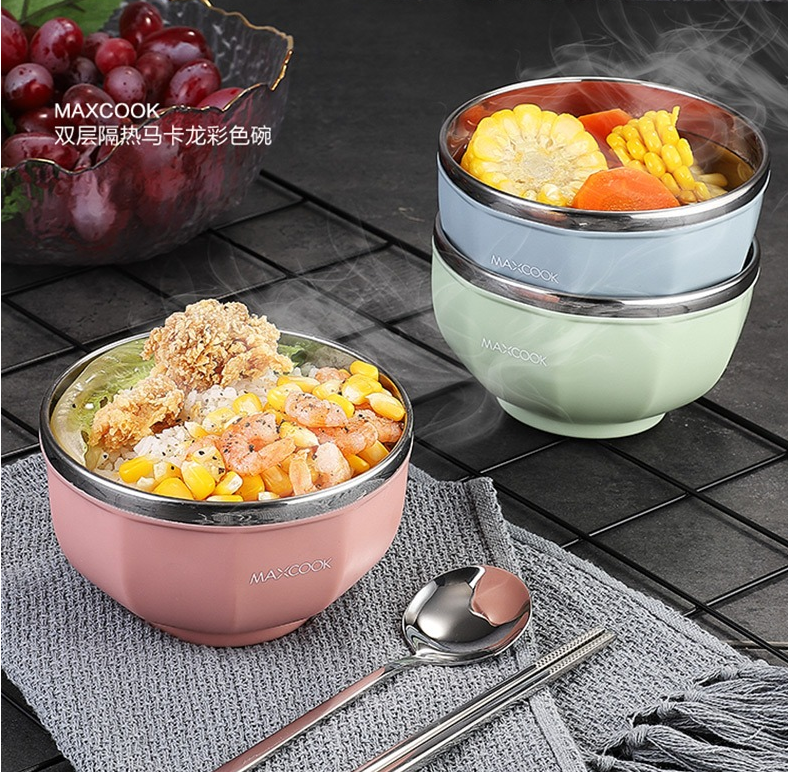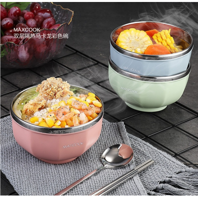 美厨(MAXCOOK)304不锈钢汤碗饭碗面碗 双层隔热 3只装用彩色碗12CM 12CM MCWA853 自营