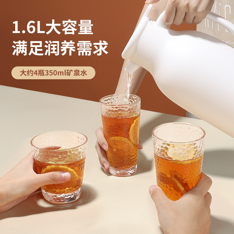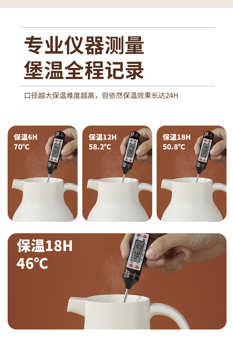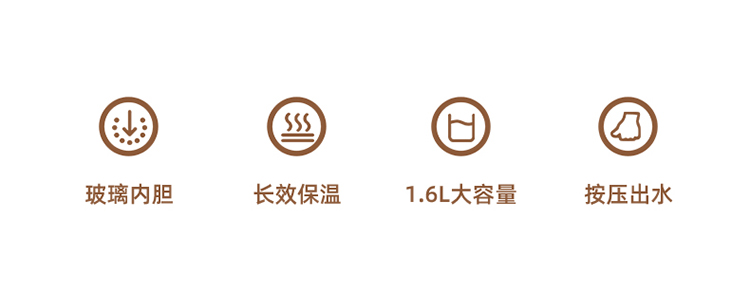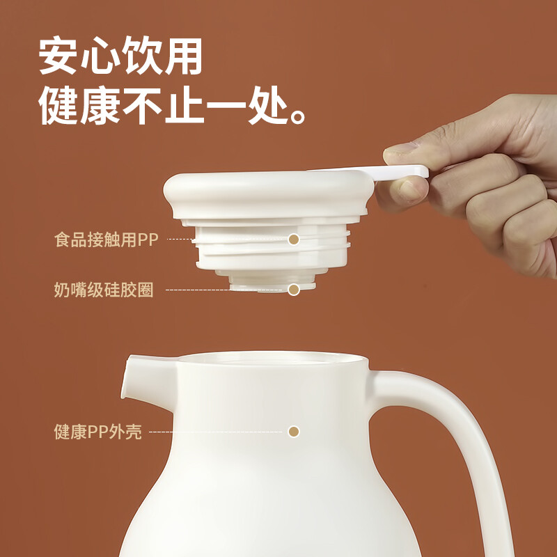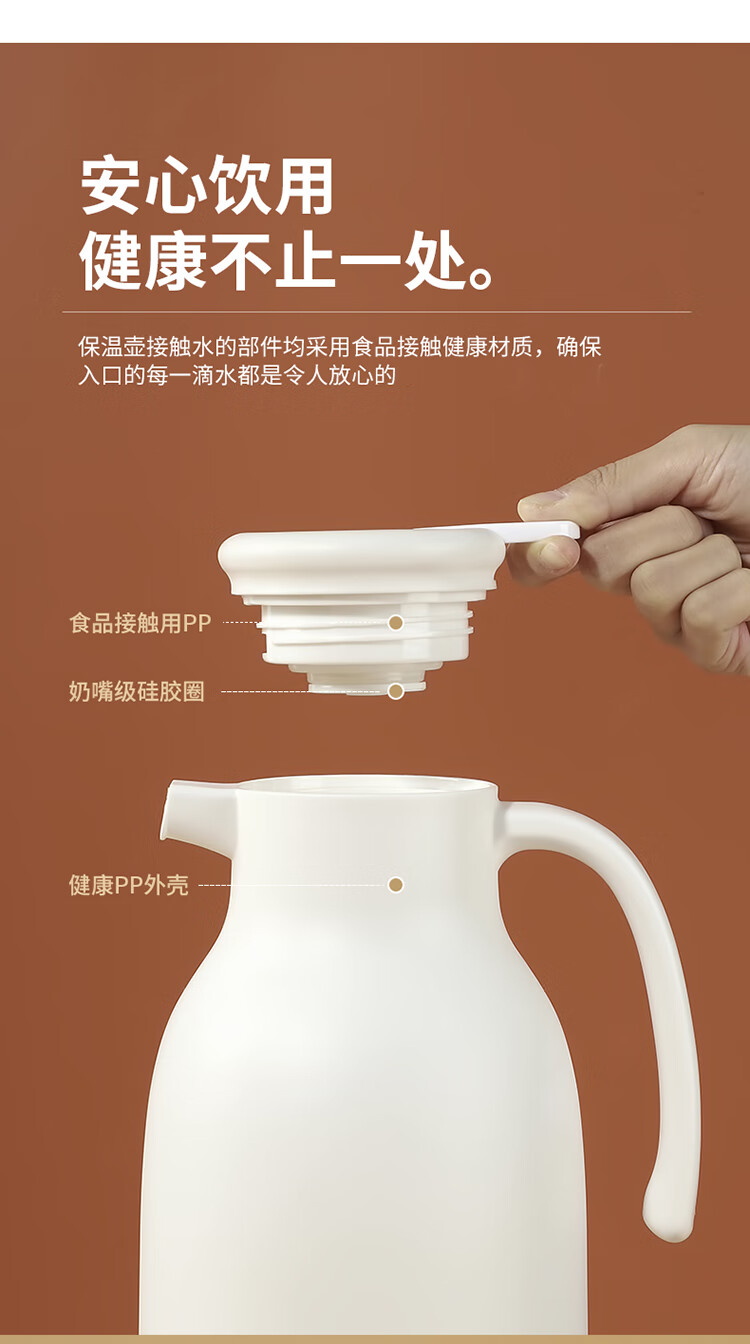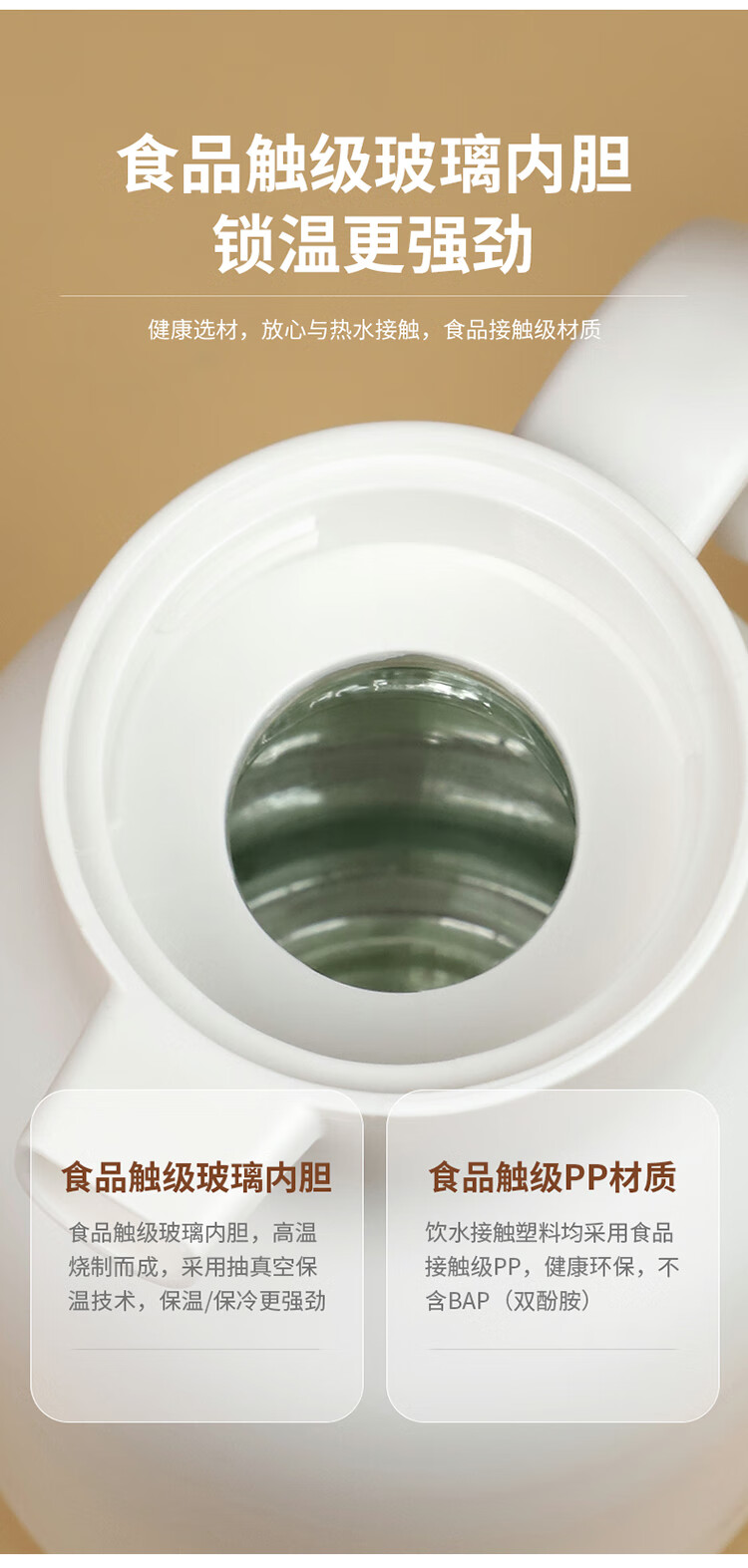美厨(maxcook)保温壶 玻璃内胆真空热水壶保温瓶暖壶开水瓶 大容量防滑咖啡壶1.6L 象牙白MCH2182 自营