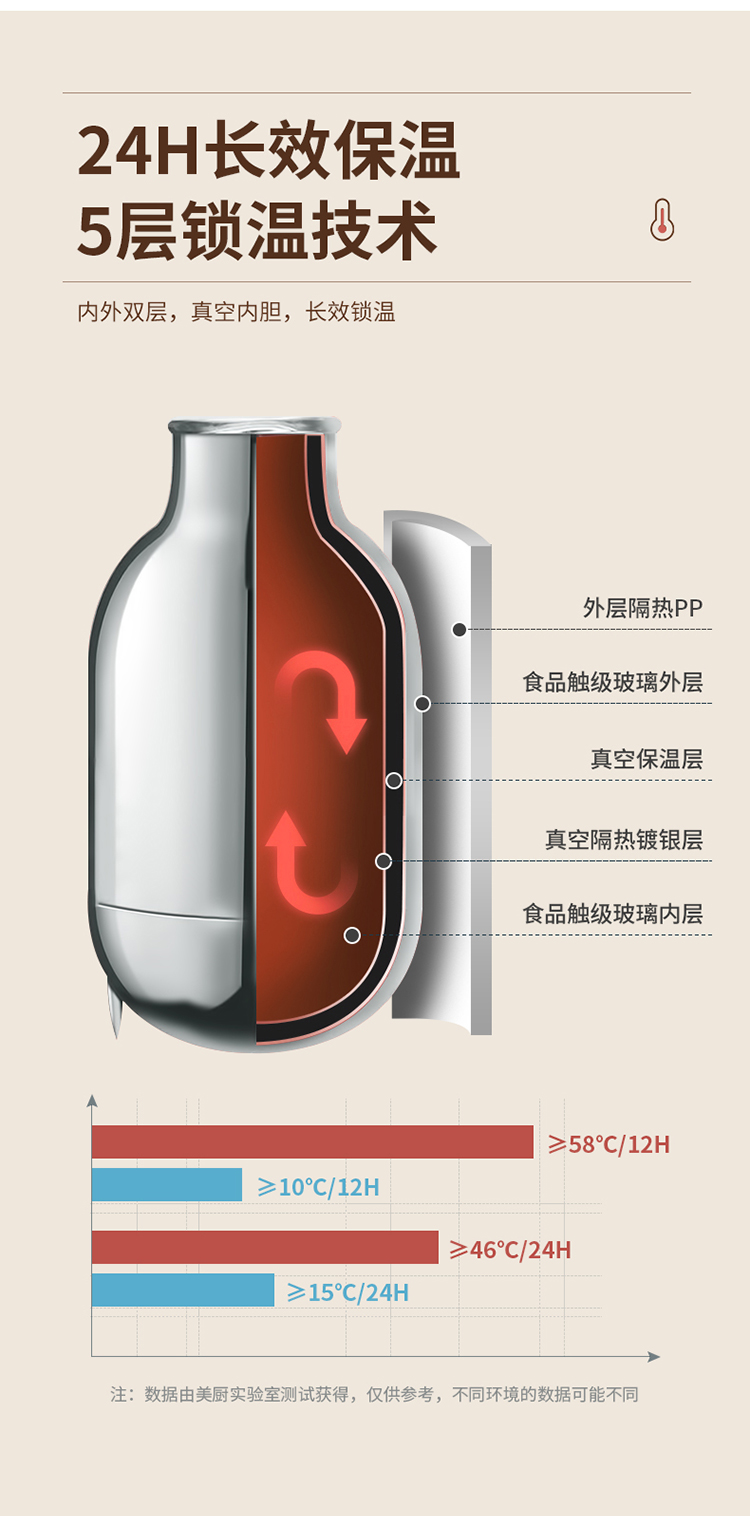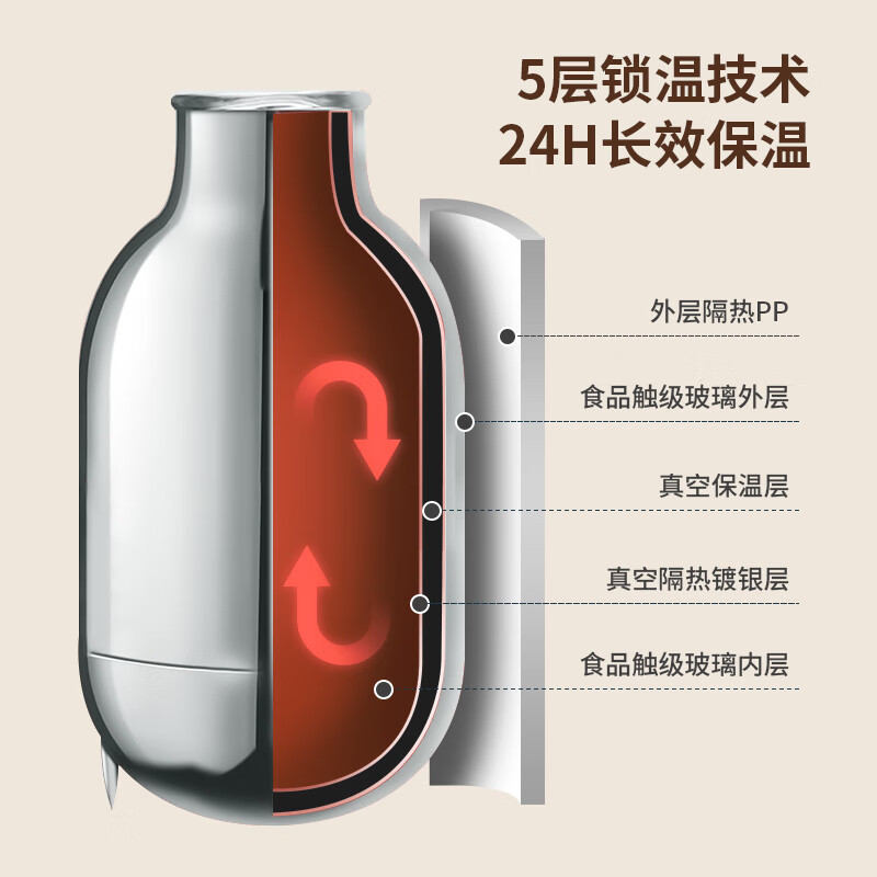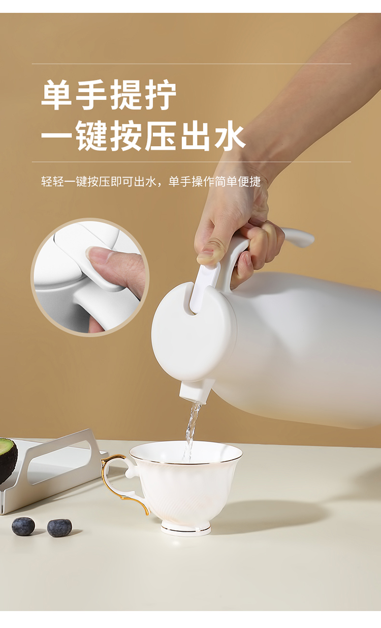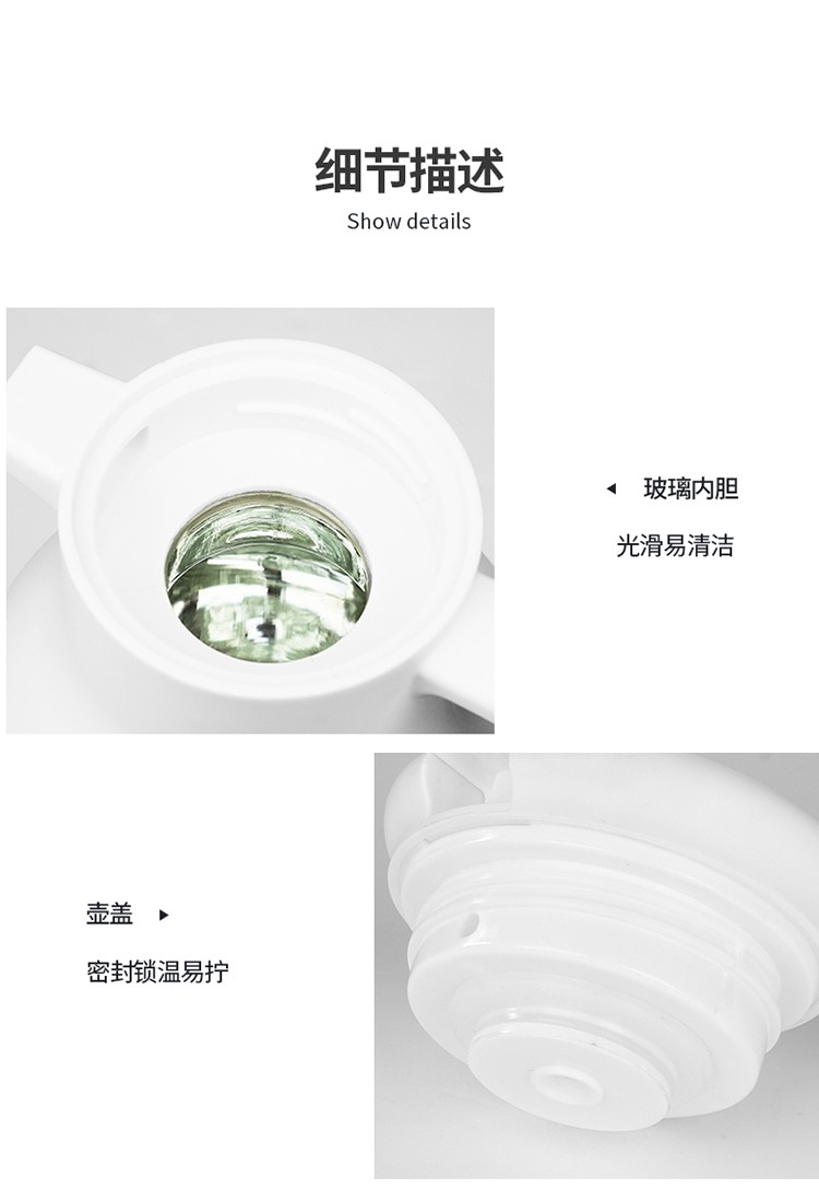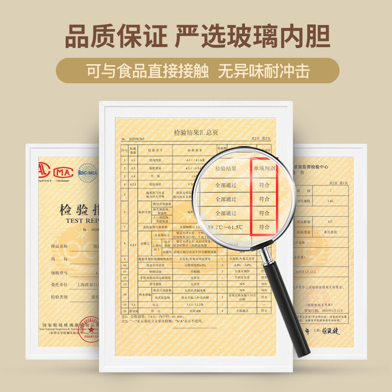 美厨(maxcook)保温壶 玻璃内胆真空热水壶保温瓶暖壶开水瓶 大容量防滑咖啡壶1.6L 象牙白MCH2182 自营