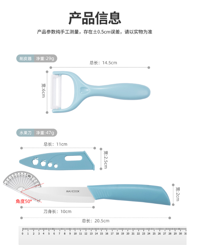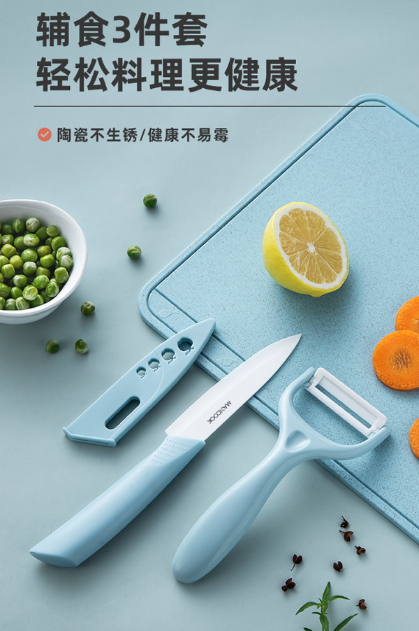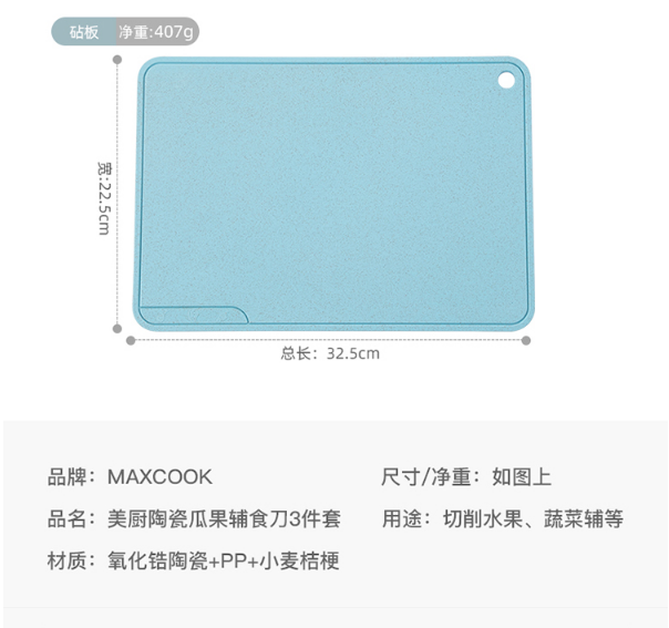 美厨(maxcook)陶瓷刀套装 厨房切菜刀水果刀削皮器砧板辅食刀瓜刨 家用刀具塑料菜板 3件套MCD2274 自营