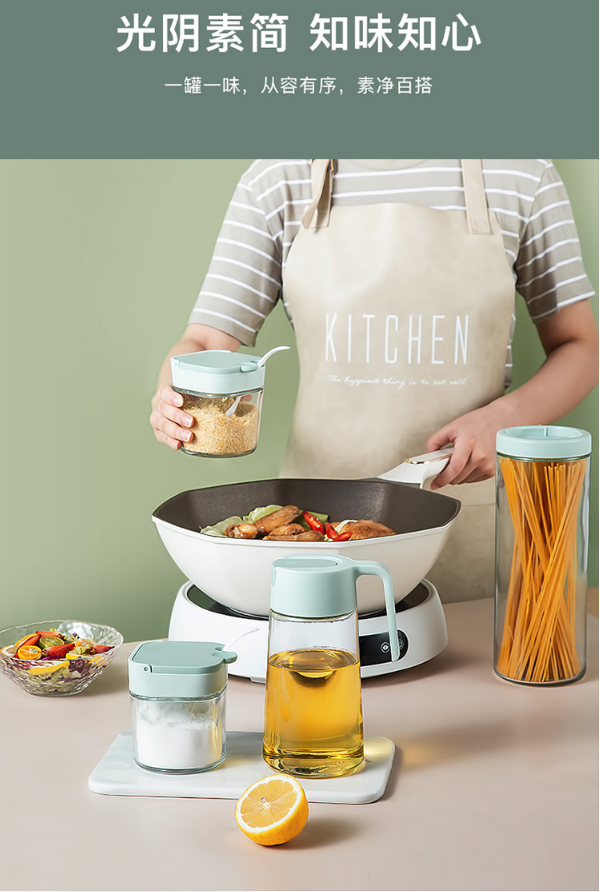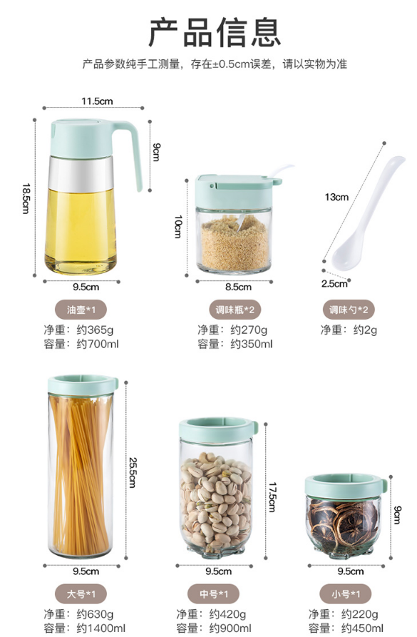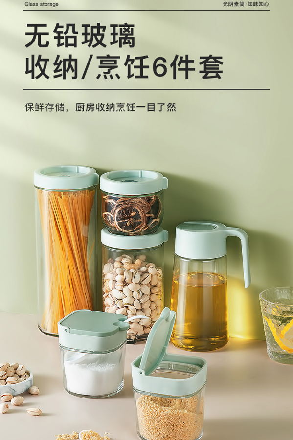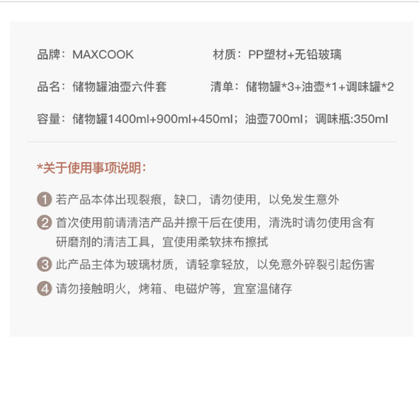 美厨(maxcook)玻璃油壶调料盒储物罐套装 油瓶盐罐调料架调料瓶调料罐调味罐储物盒 6件套MCPJ0140 自营