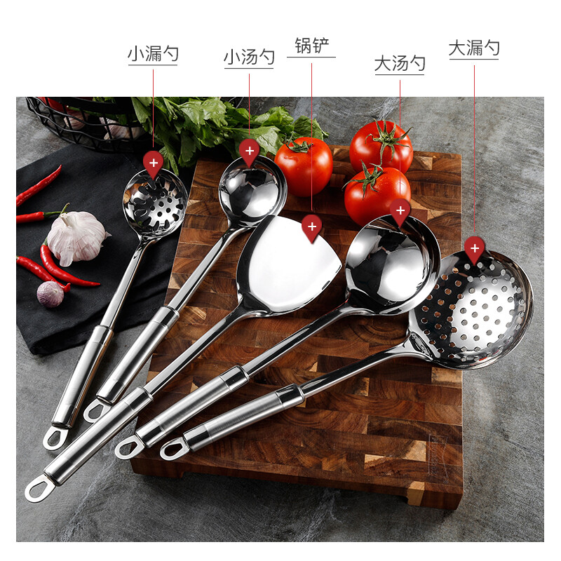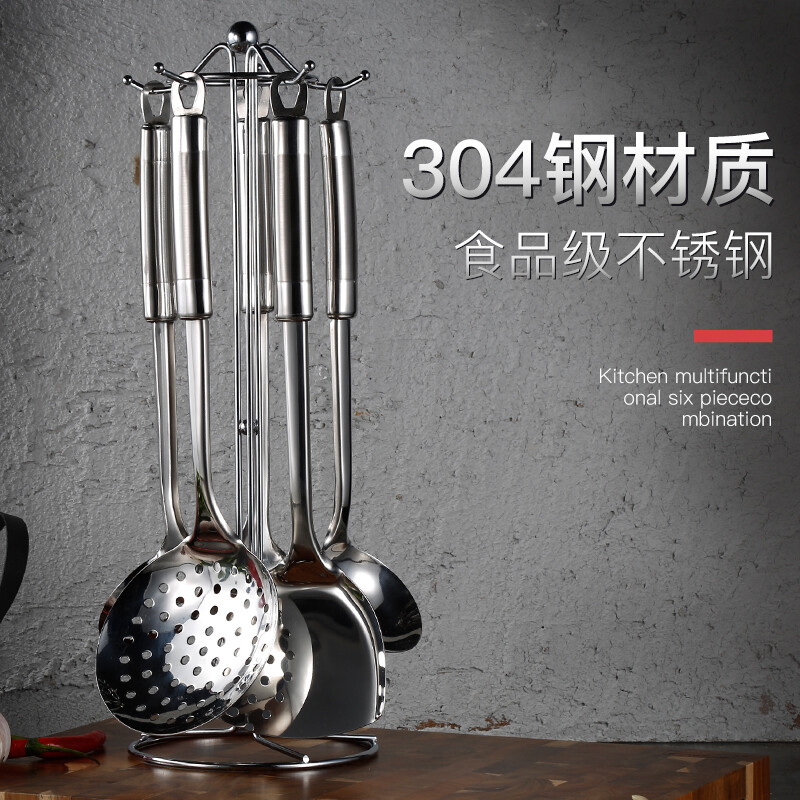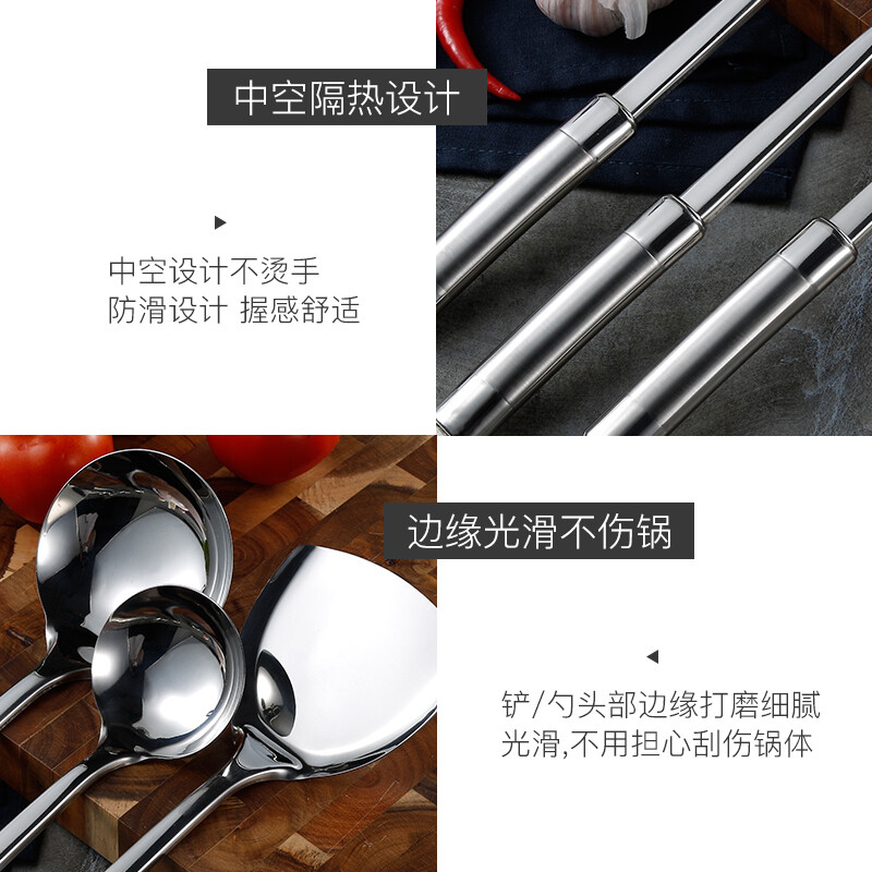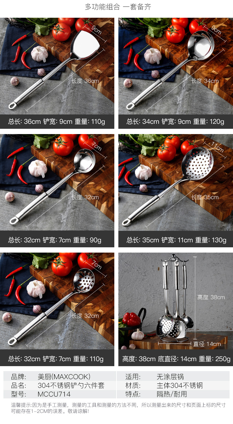 美厨(maxcook)304不锈钢铲勺套装 锅铲炒铲汤勺漏勺火锅勺六件套MCCU714 自营