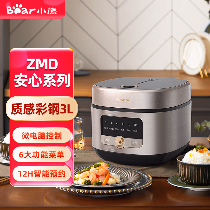 小熊(Bear)DFB-P30M3微电脑智能预约定时煮饭器电饭煲3L DFB-P30M3【ZMD安心系列】 自营