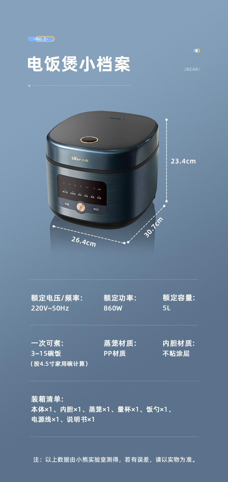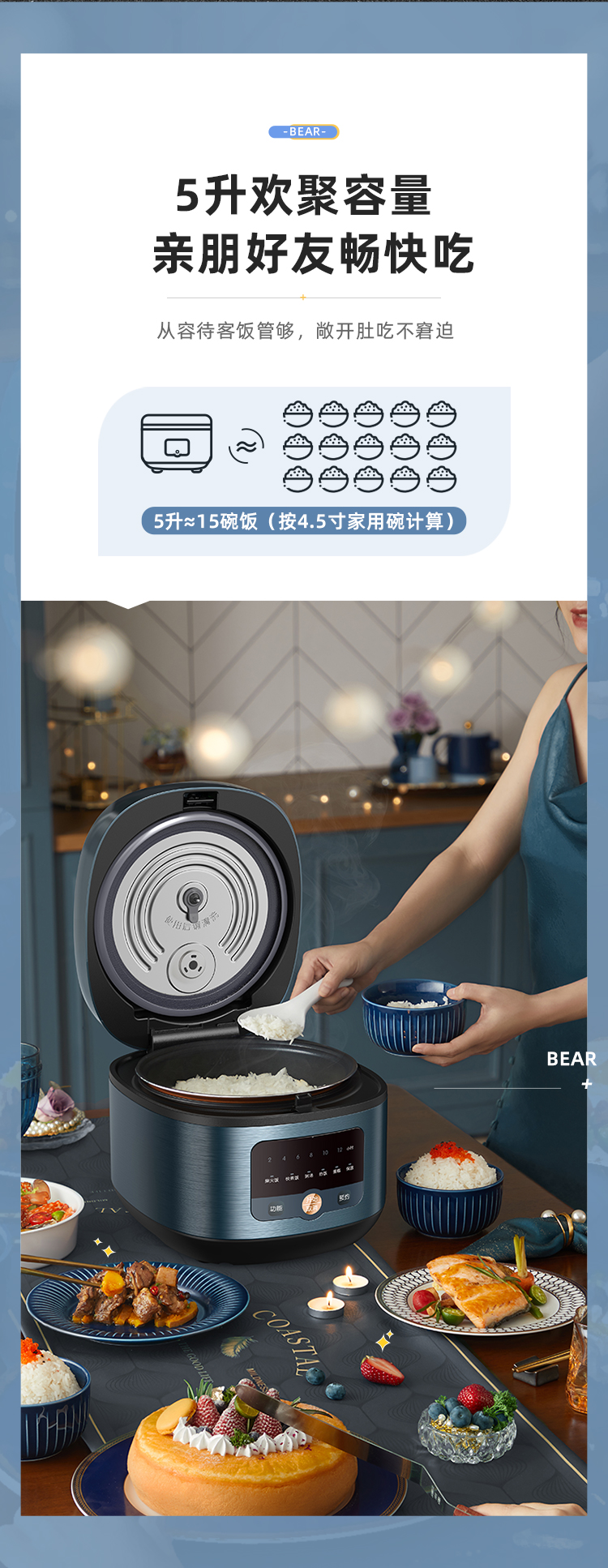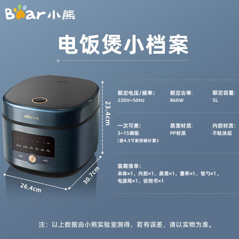 小熊(Bear)电饭煲 电饭锅5升大容量家用智能快煮饭预约定时不溢锅3-10人多功能米饭锅 DFB-P50E1 自营