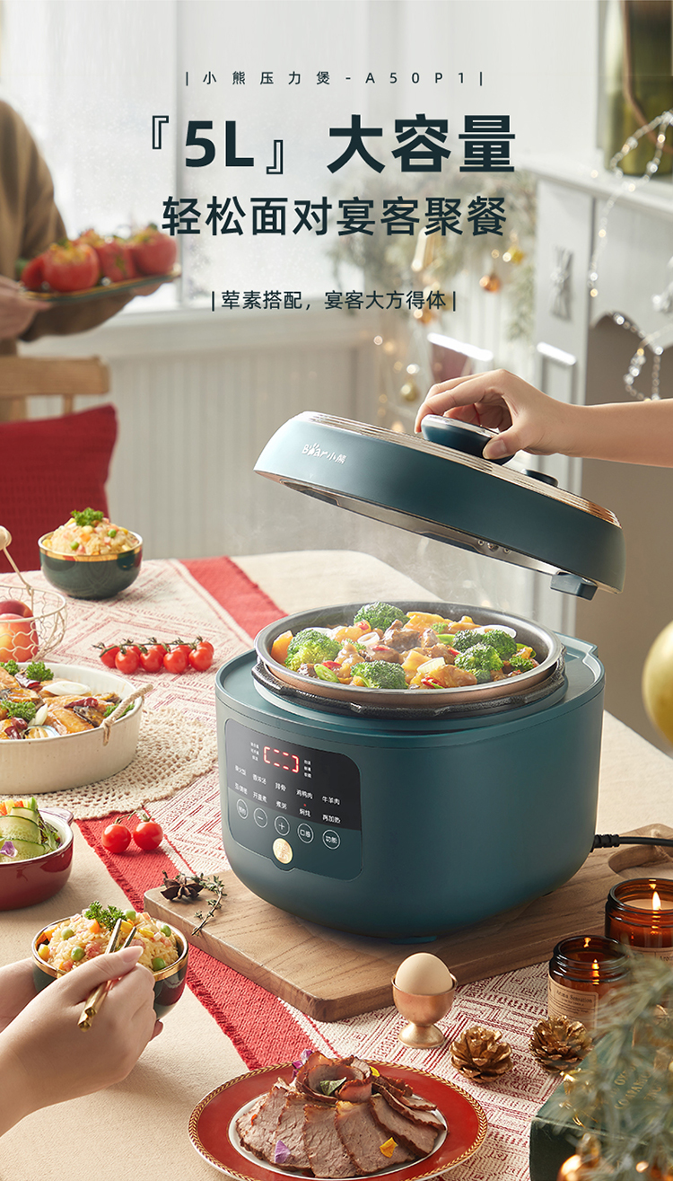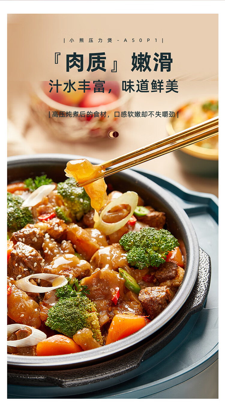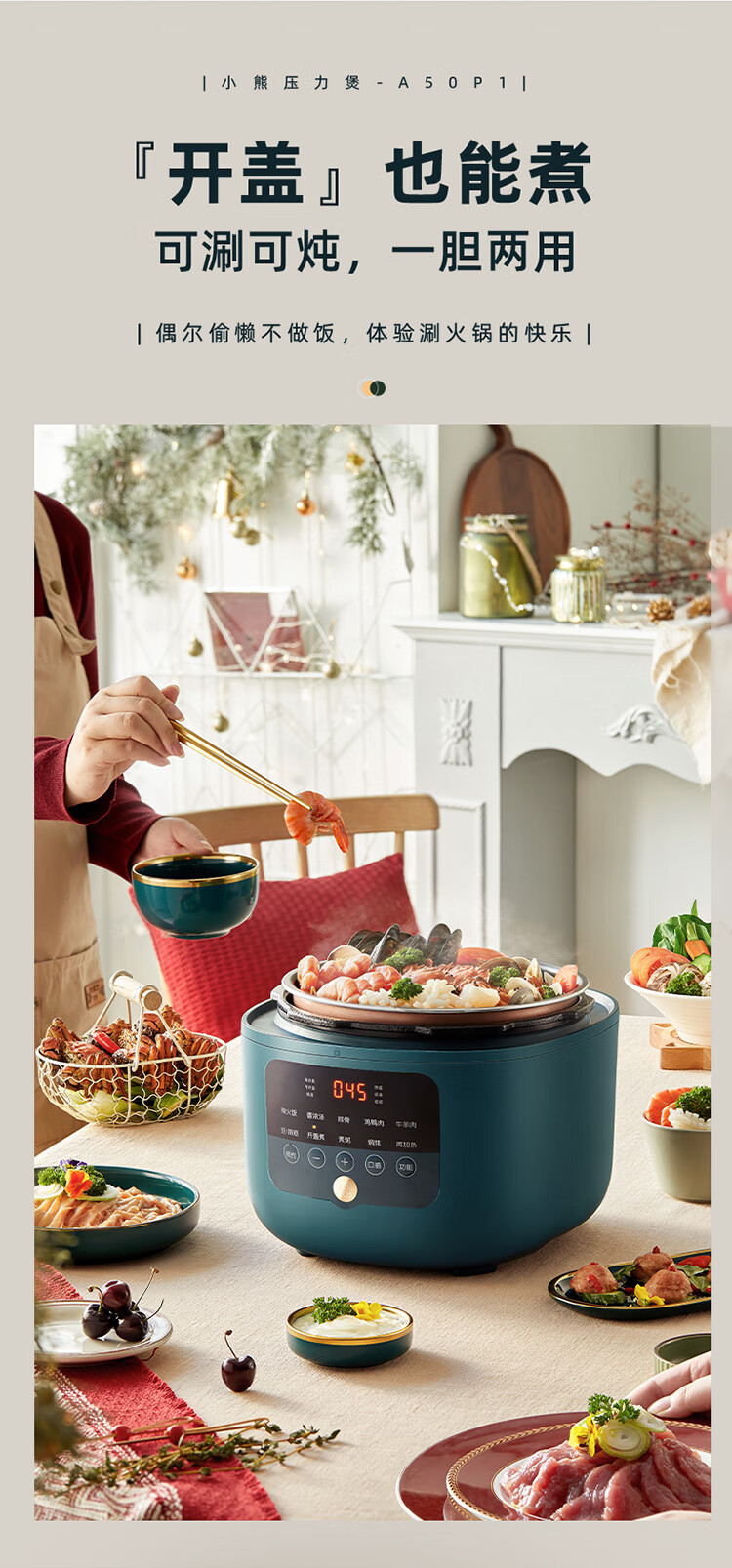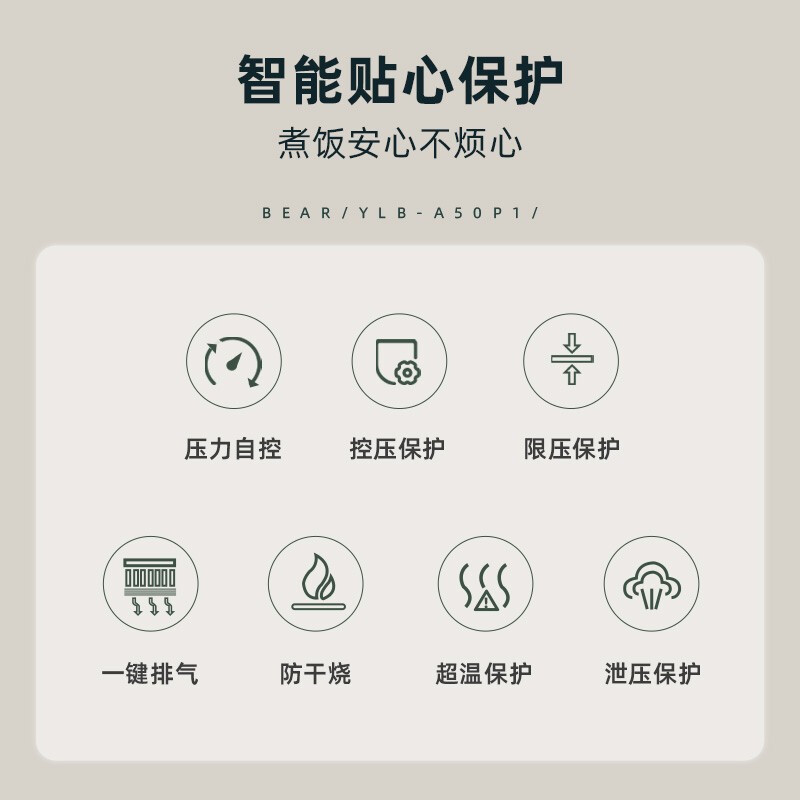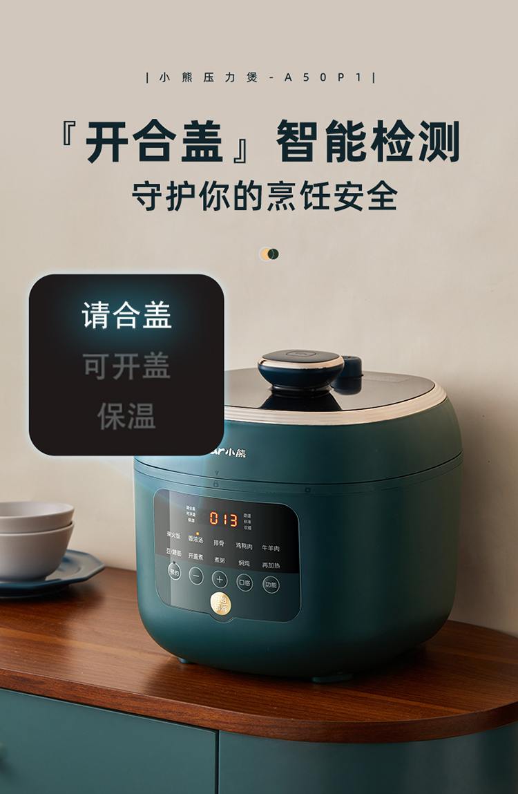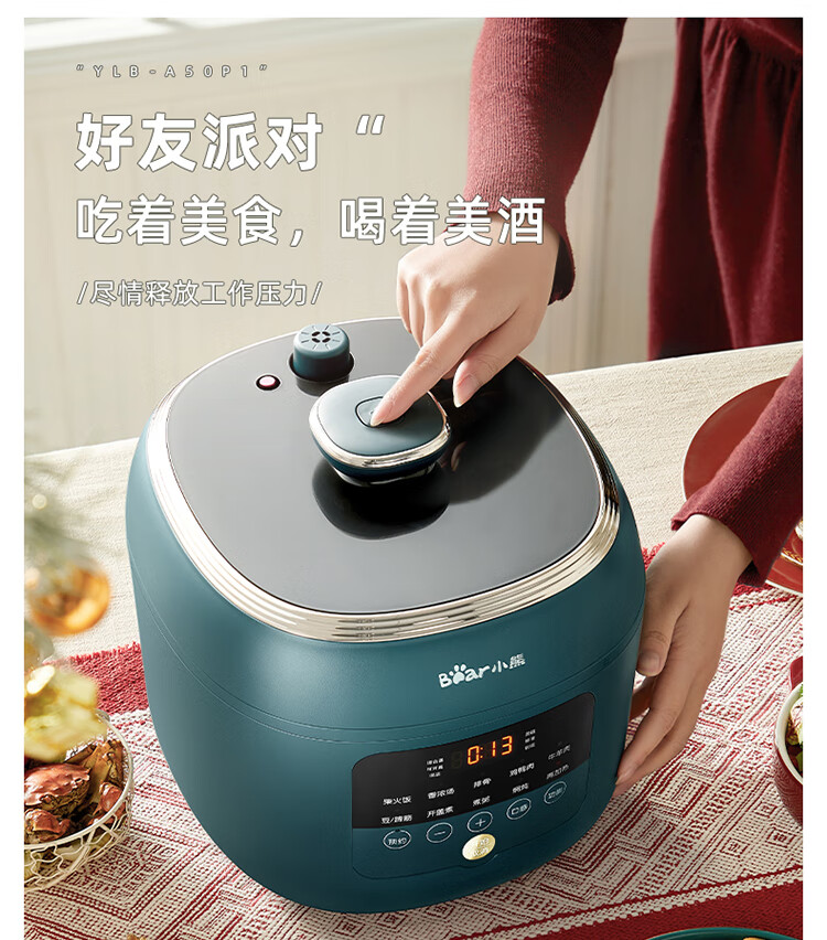 小熊(Bear)电压力锅 高压锅5L家用多功能高压快煮开盖收汁智能电饭锅压力锅 YLB-A50P1 自营