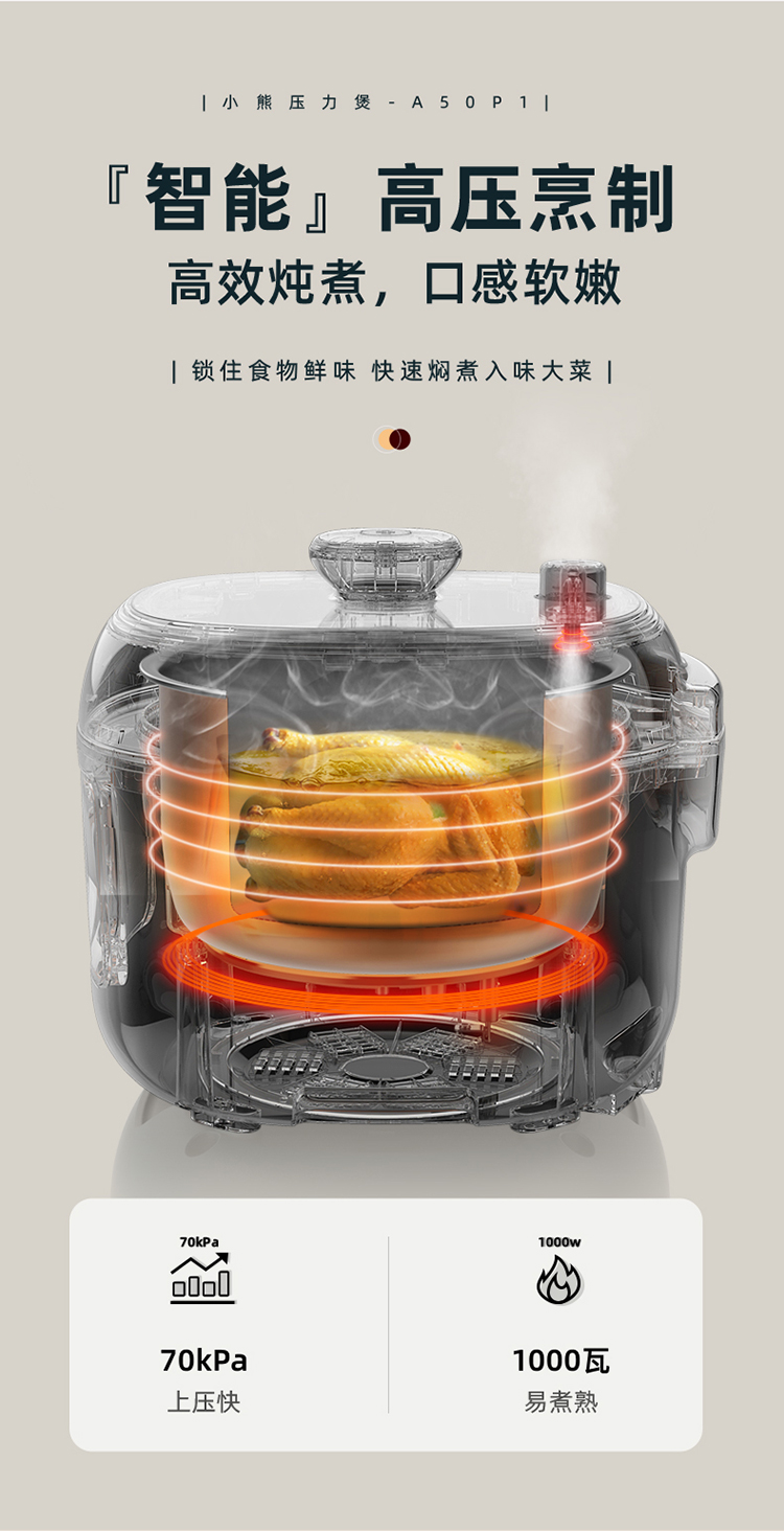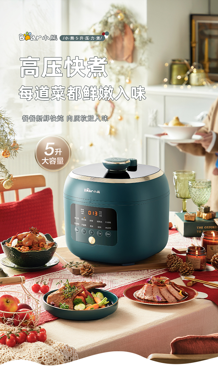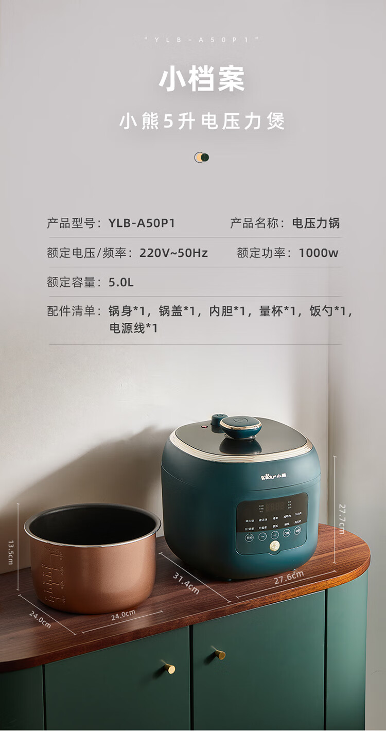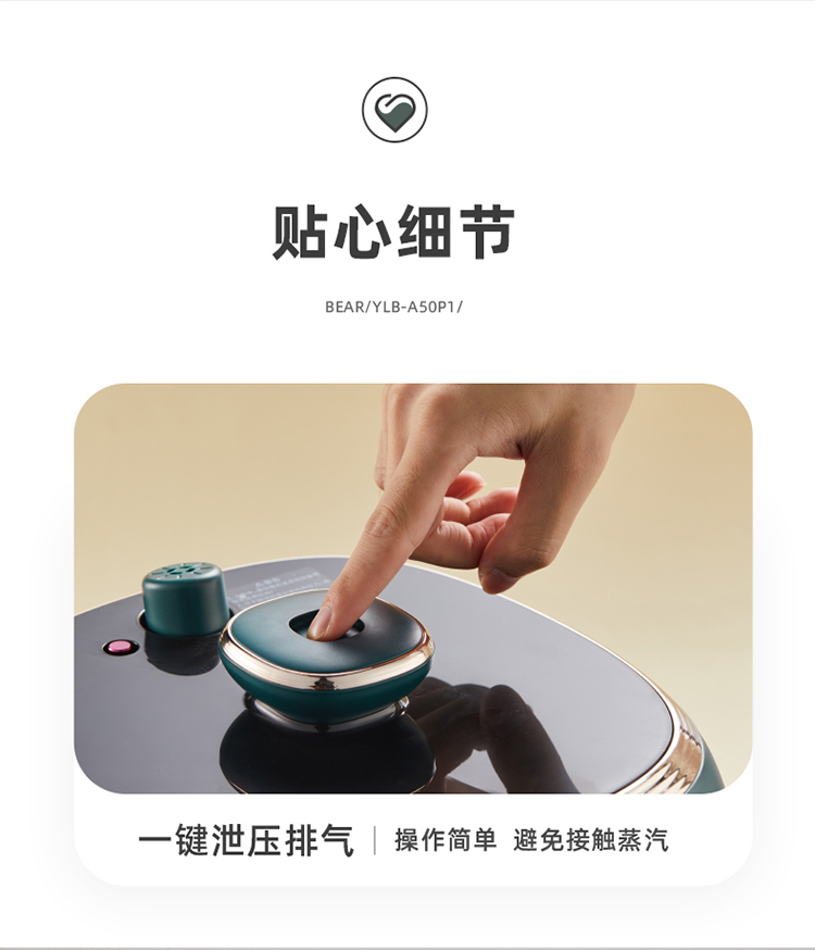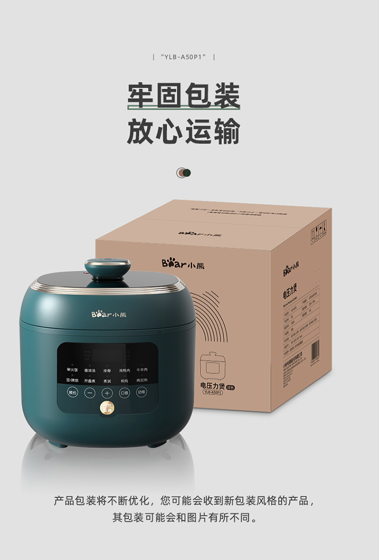 小熊(Bear)电压力锅 高压锅5L家用多功能高压快煮开盖收汁智能电饭锅压力锅 YLB-A50P1 自营