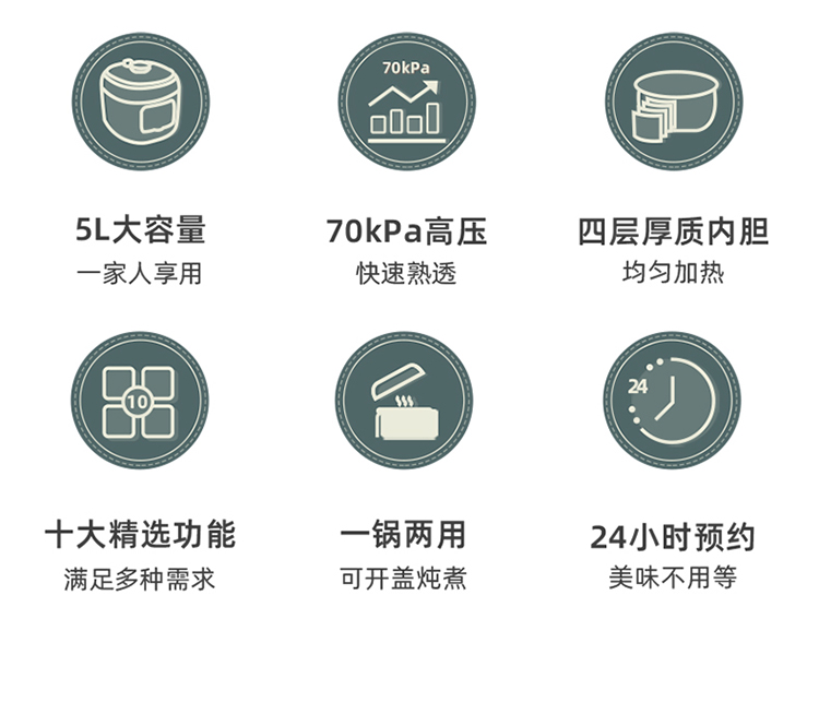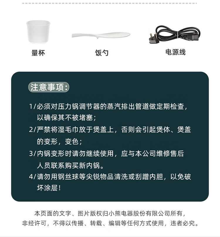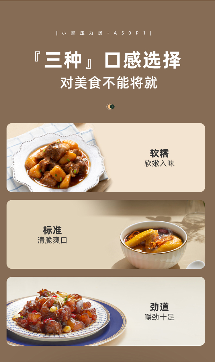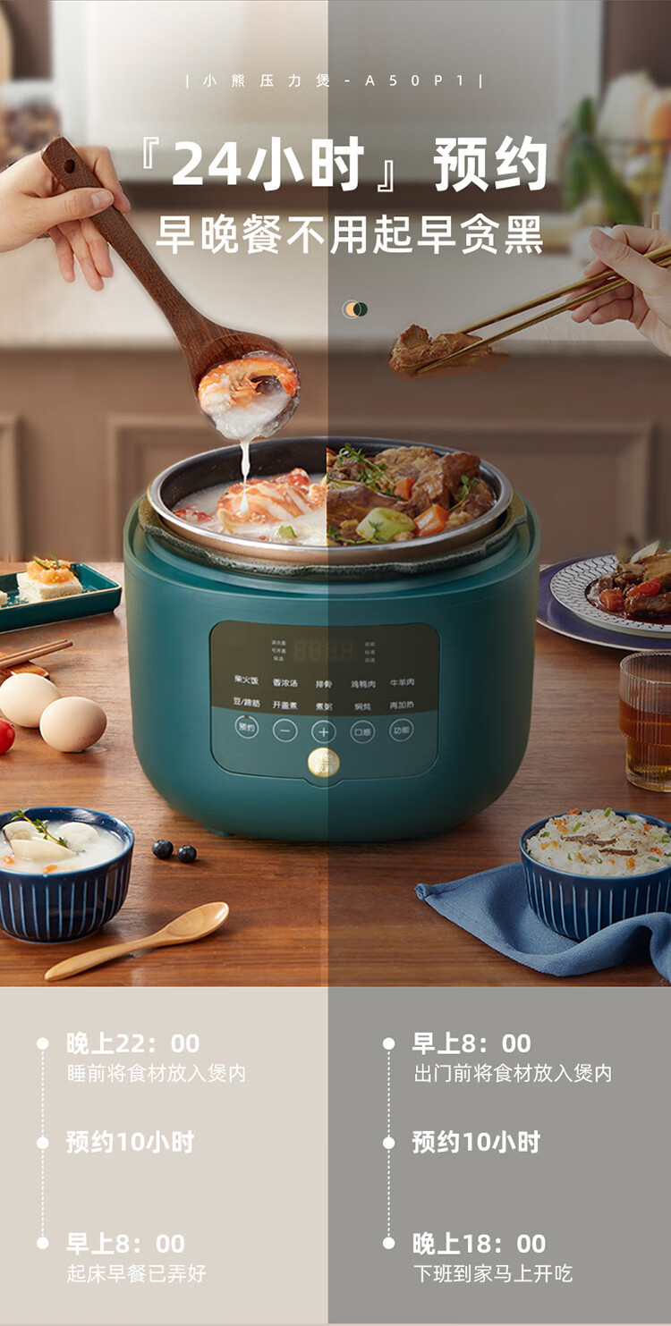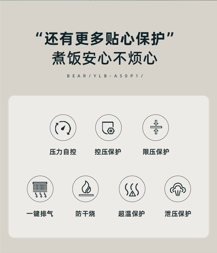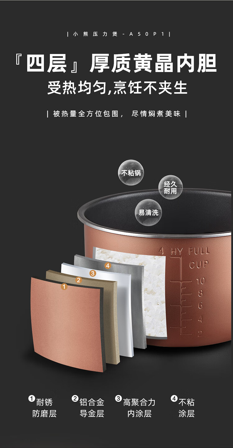 小熊(Bear)电压力锅 高压锅5L家用多功能高压快煮开盖收汁智能电饭锅压力锅 YLB-A50P1 自营