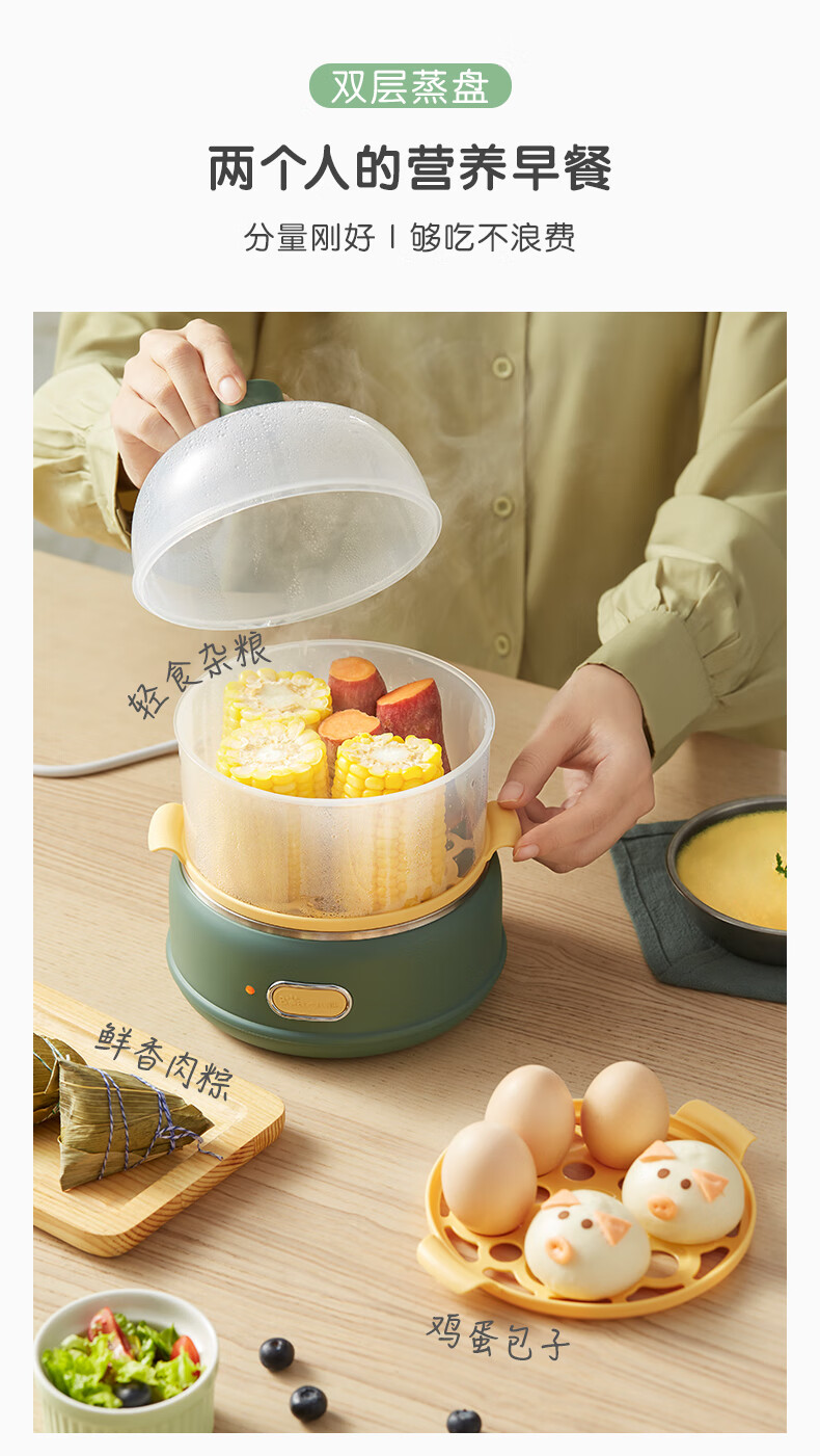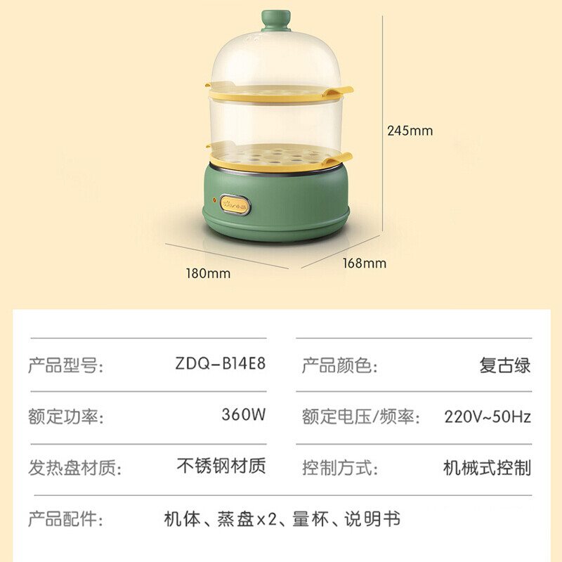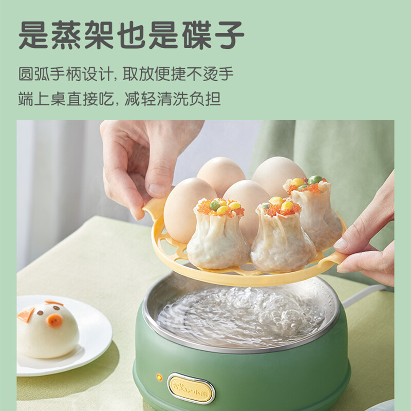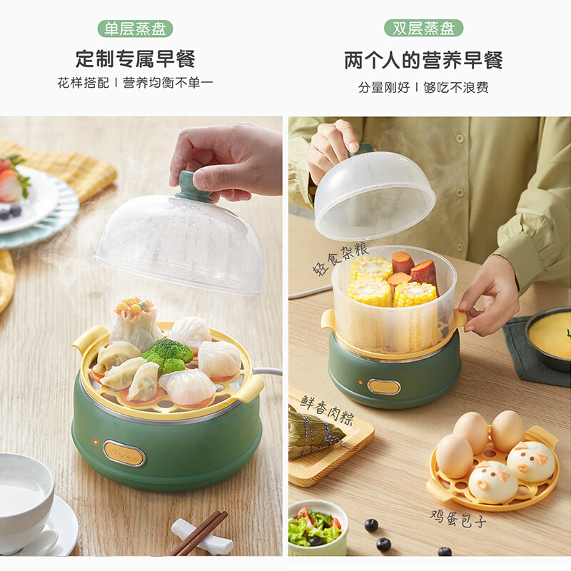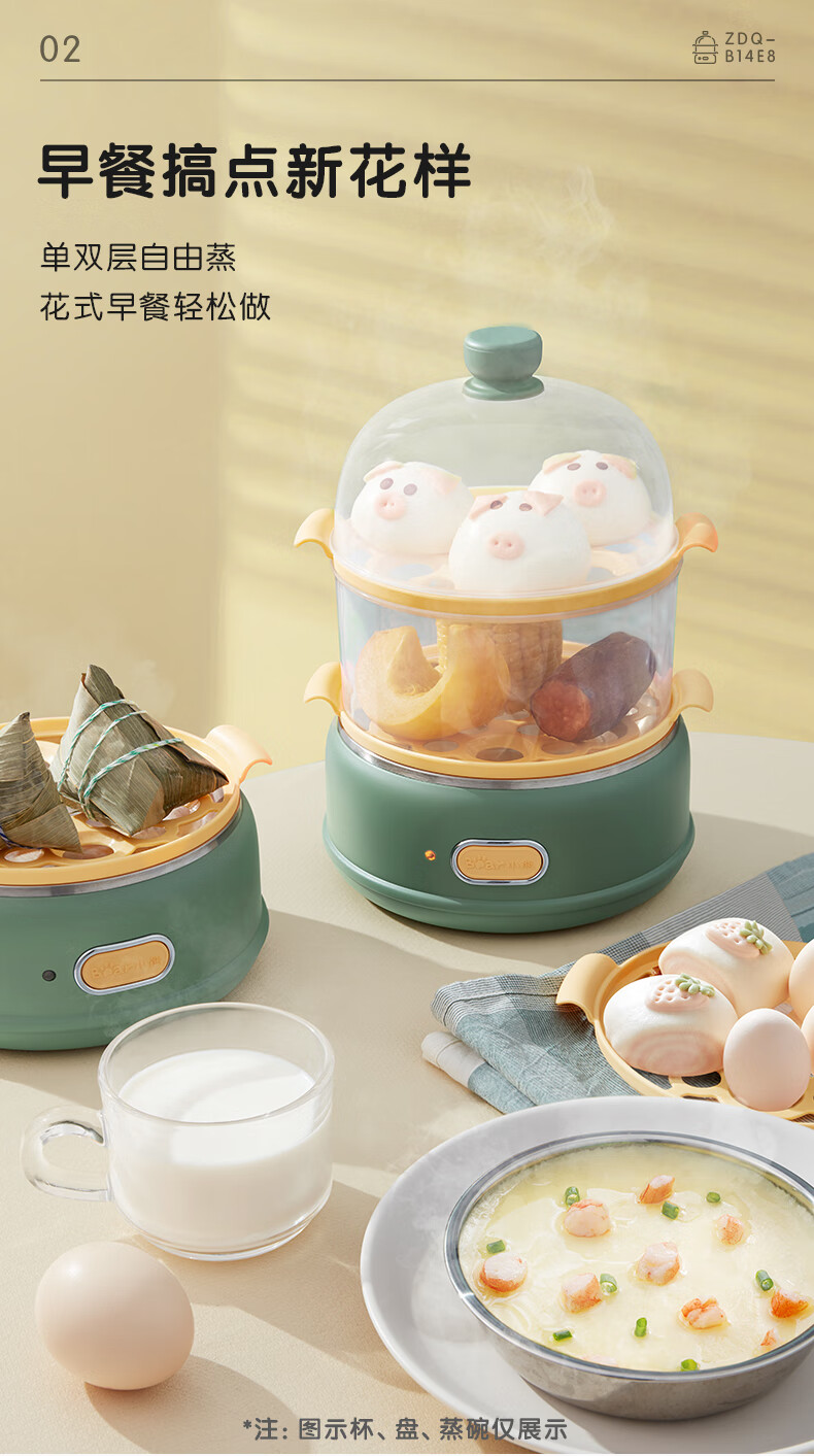 小熊(Bear)煮蛋器双层家用蒸蛋器多功能煮鸡蛋神器防干烧自动断电大容量早餐神器 【无不锈钢蒸碗】全钢加热盘ZDQ-B14E8 自营