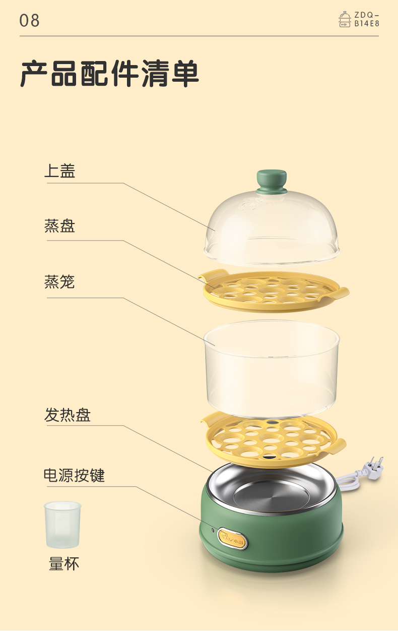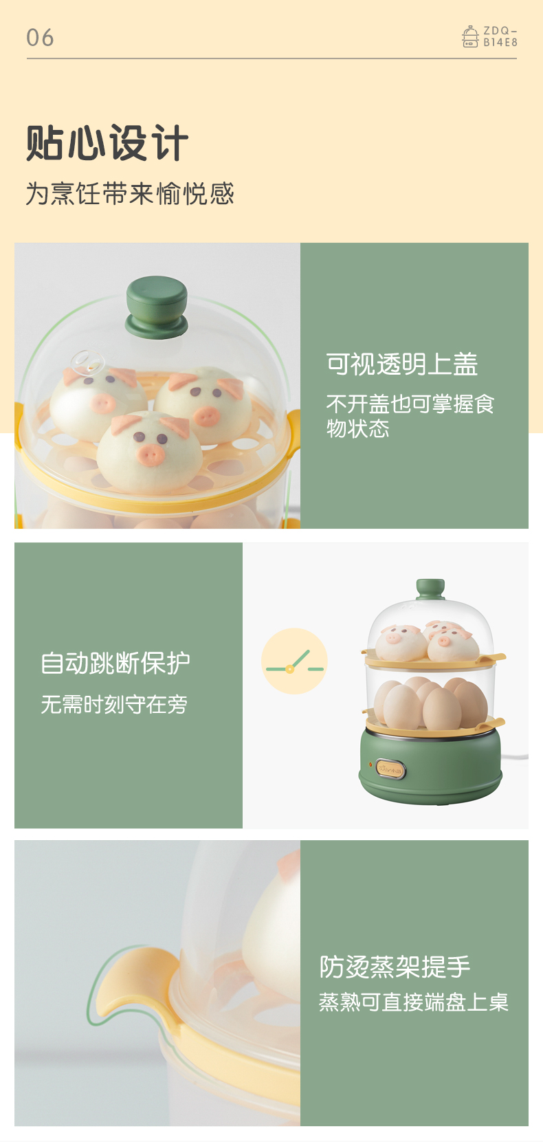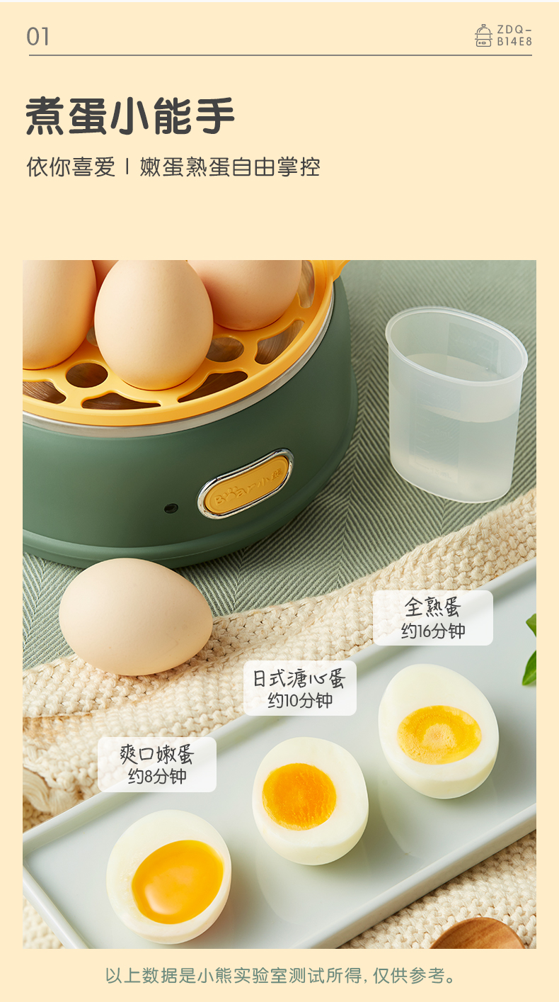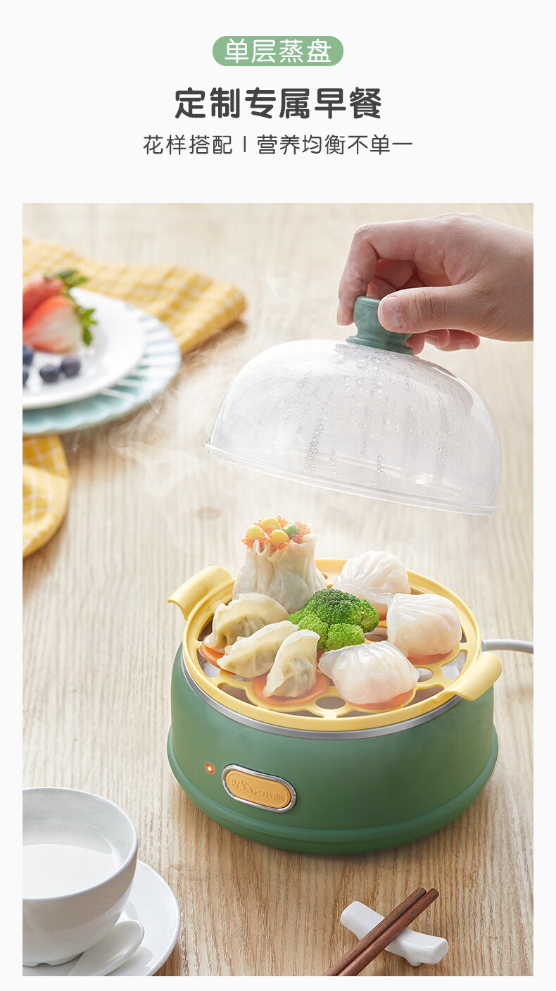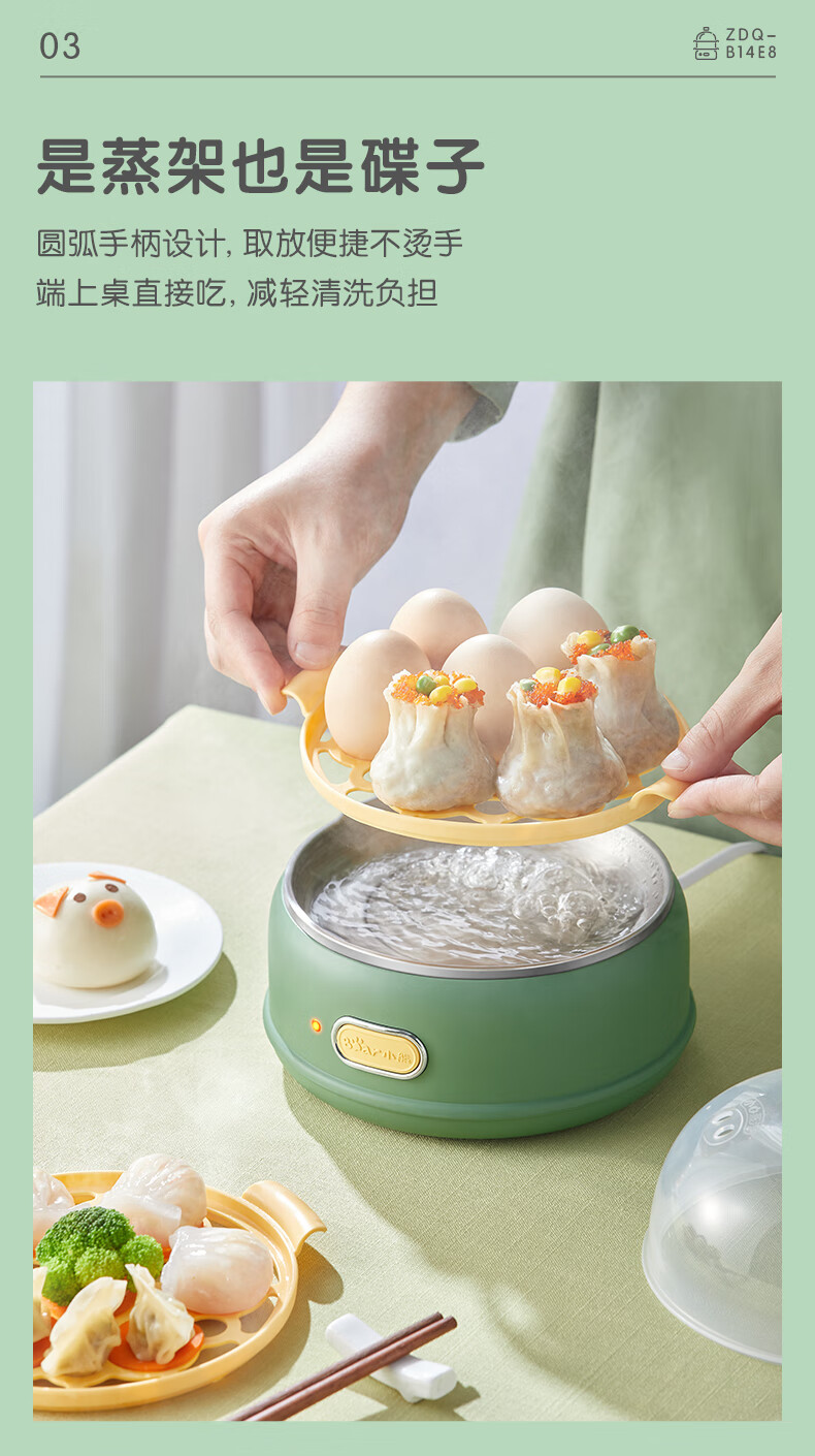 小熊(Bear)煮蛋器双层家用蒸蛋器多功能煮鸡蛋神器防干烧自动断电大容量早餐神器 【无不锈钢蒸碗】全钢加热盘ZDQ-B14E8 自营