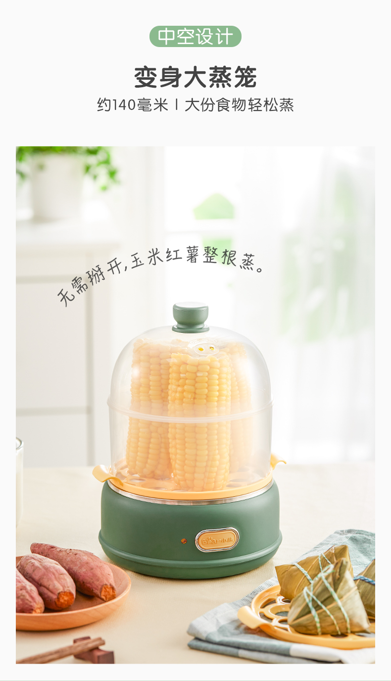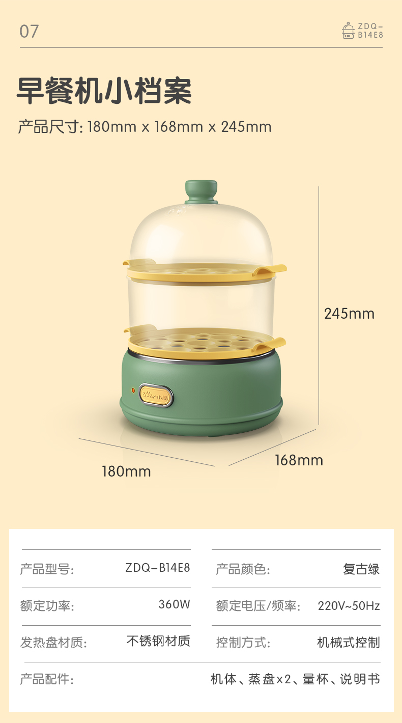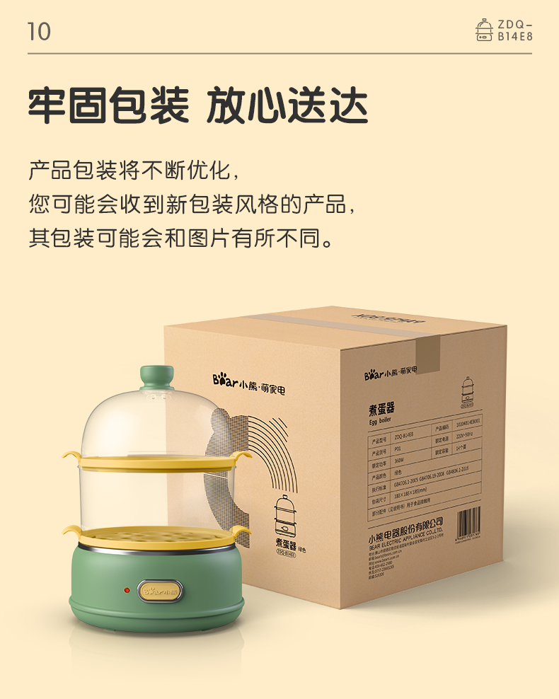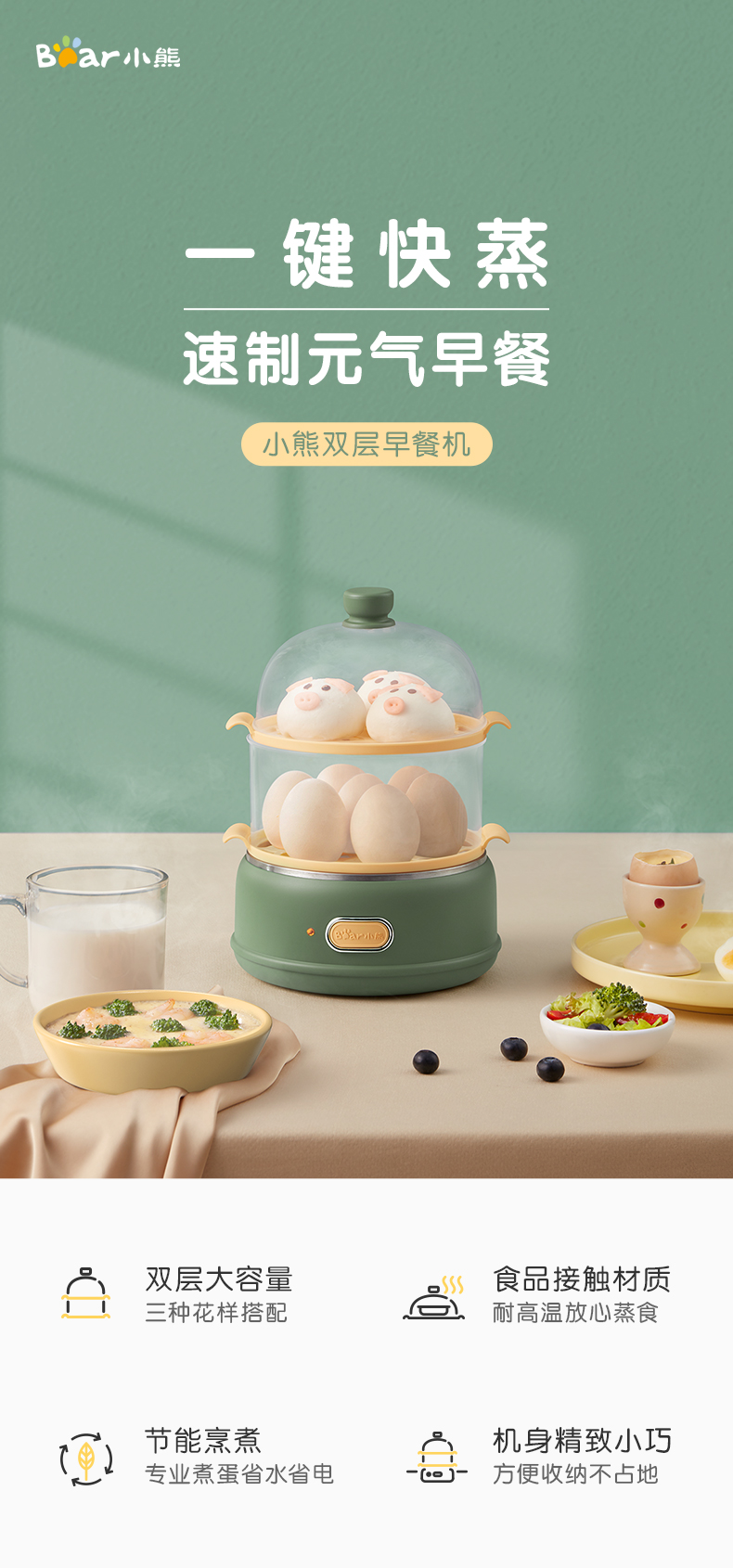 小熊(Bear)煮蛋器双层家用蒸蛋器多功能煮鸡蛋神器防干烧自动断电大容量早餐神器 【无不锈钢蒸碗】全钢加热盘ZDQ-B14E8 自营