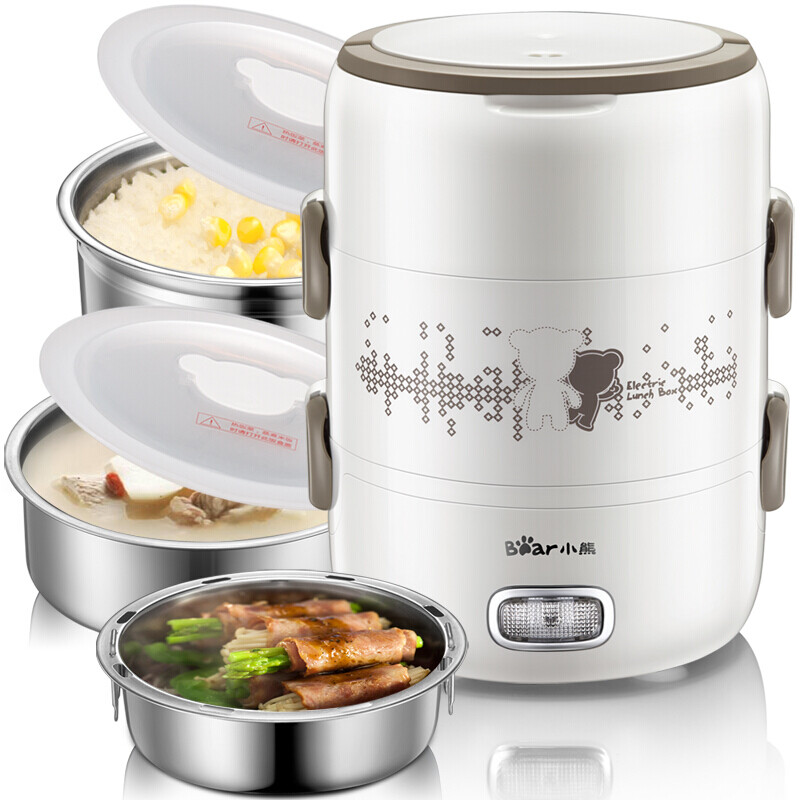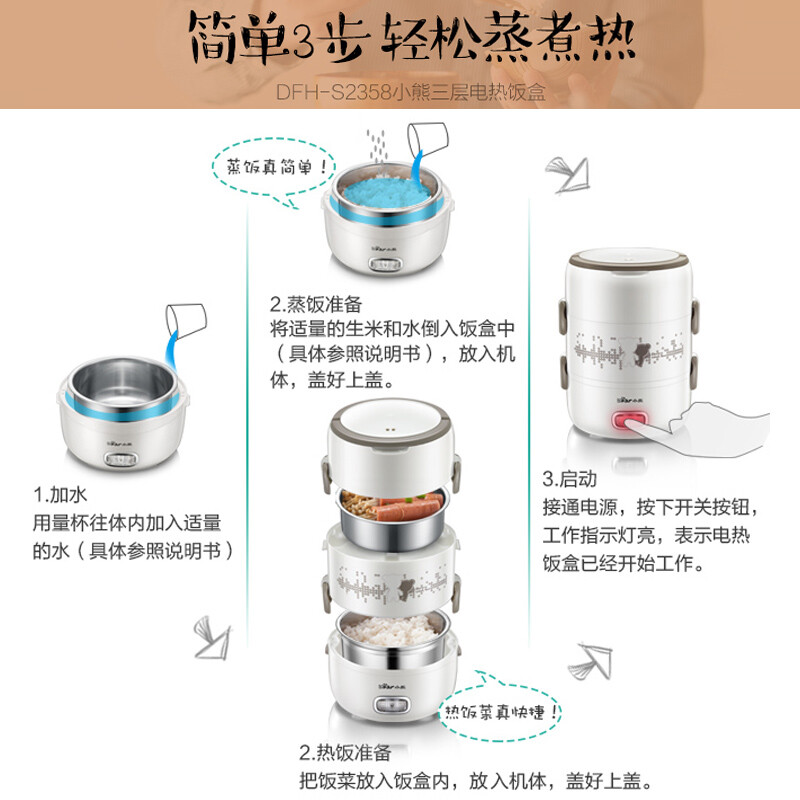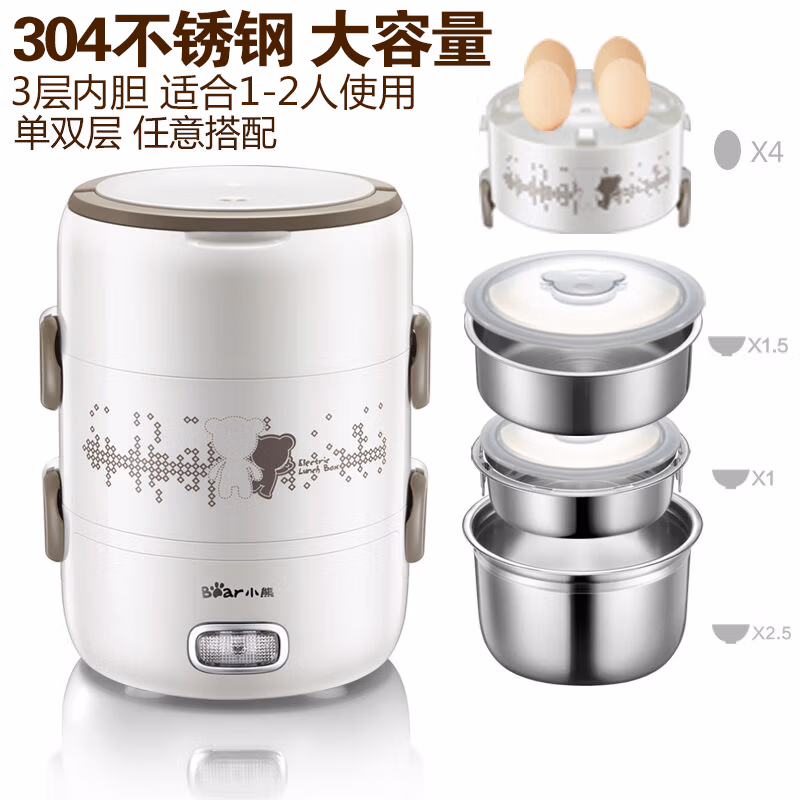 小熊(Bear)电热饭盒上班族三层大容量可插电不锈钢煮蒸热饭神器加热保温饭盒便携带学生便当盒 DFH-S2358 2升 自营