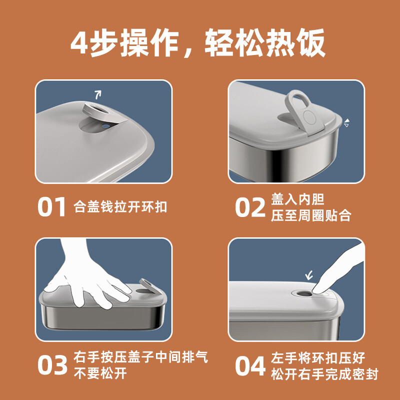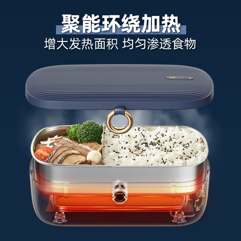 小熊(Bear)加热饭盒 电热饭盒 保温饭盒 免注水便携式304不锈钢内胆热饭神器 蒸煮自热饭盒0.9L DFH-P09D1 自营