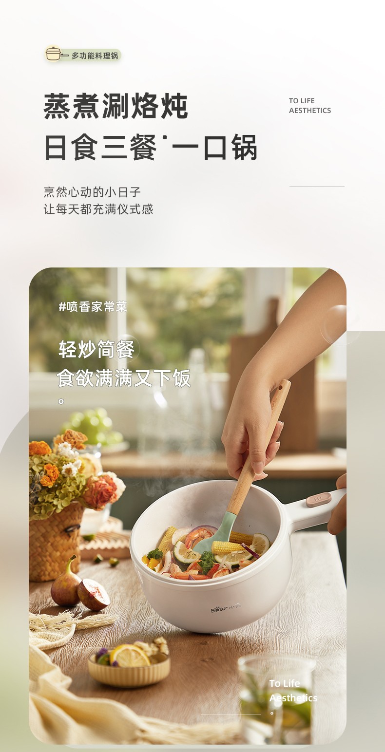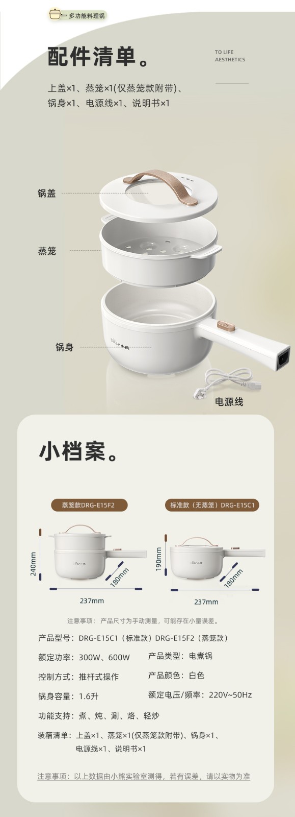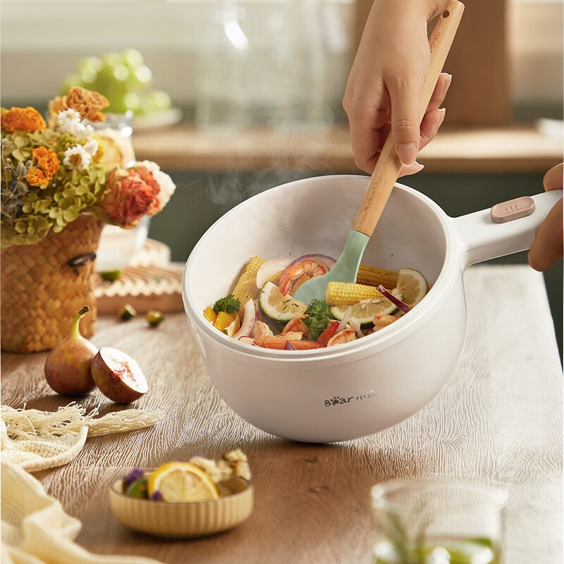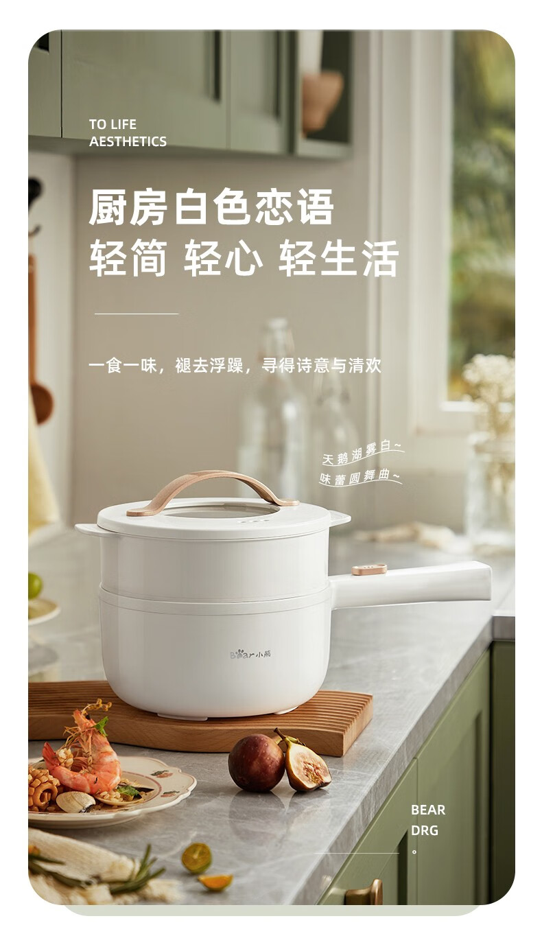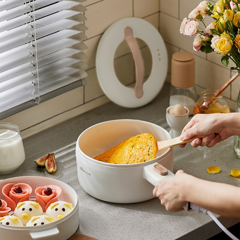 小熊(Bear)电煮锅 电热锅 一体小电锅宿舍小锅火锅煮面锅多功能电炒锅 麦饭石内胆 1.6L 【性价比优选】配蒸笼 DRG-E15F2 自营
