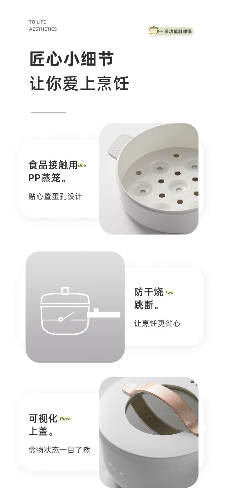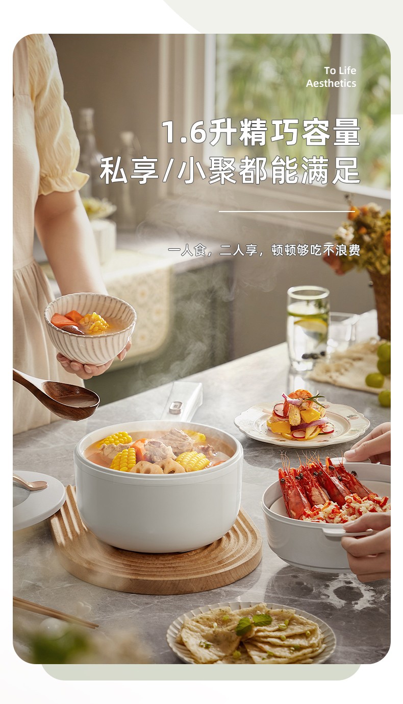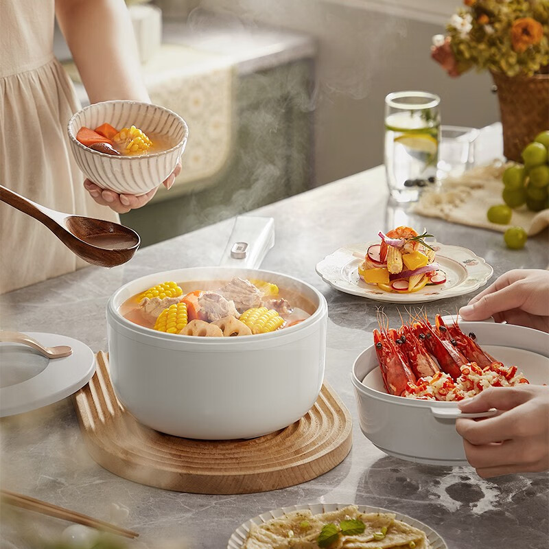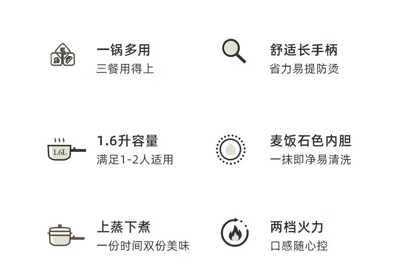 小熊(Bear)电煮锅 电热锅 一体小电锅宿舍小锅火锅煮面锅多功能电炒锅 麦饭石内胆 1.6L 【性价比优选】配蒸笼 DRG-E15F2 自营