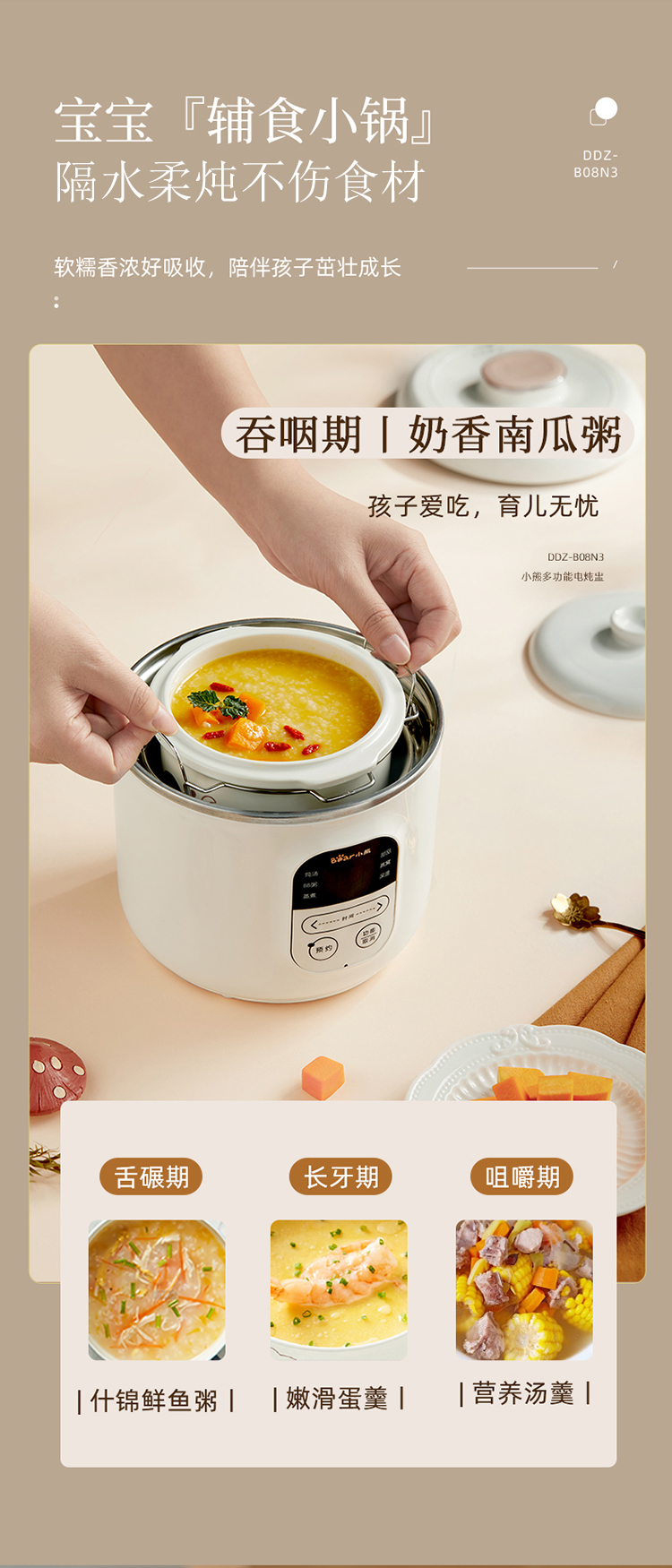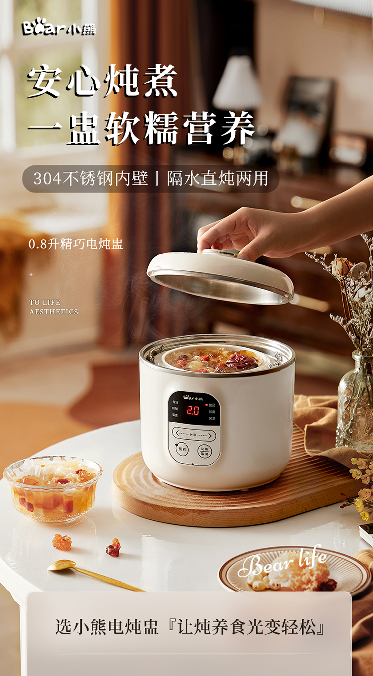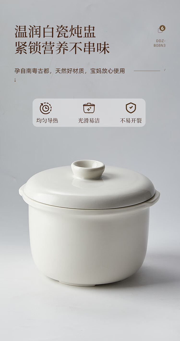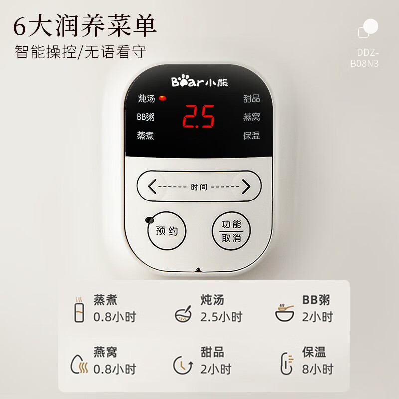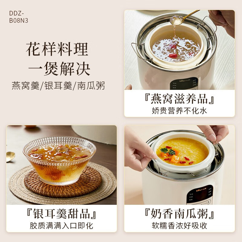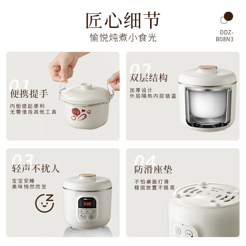 小熊(Bear)电炖盅 电炖锅 燕窝炖盅 宝宝辅食婴儿bb煲迷你煮粥煲汤锅小容量白瓷 DDZ-B08N3 0.8L 自营