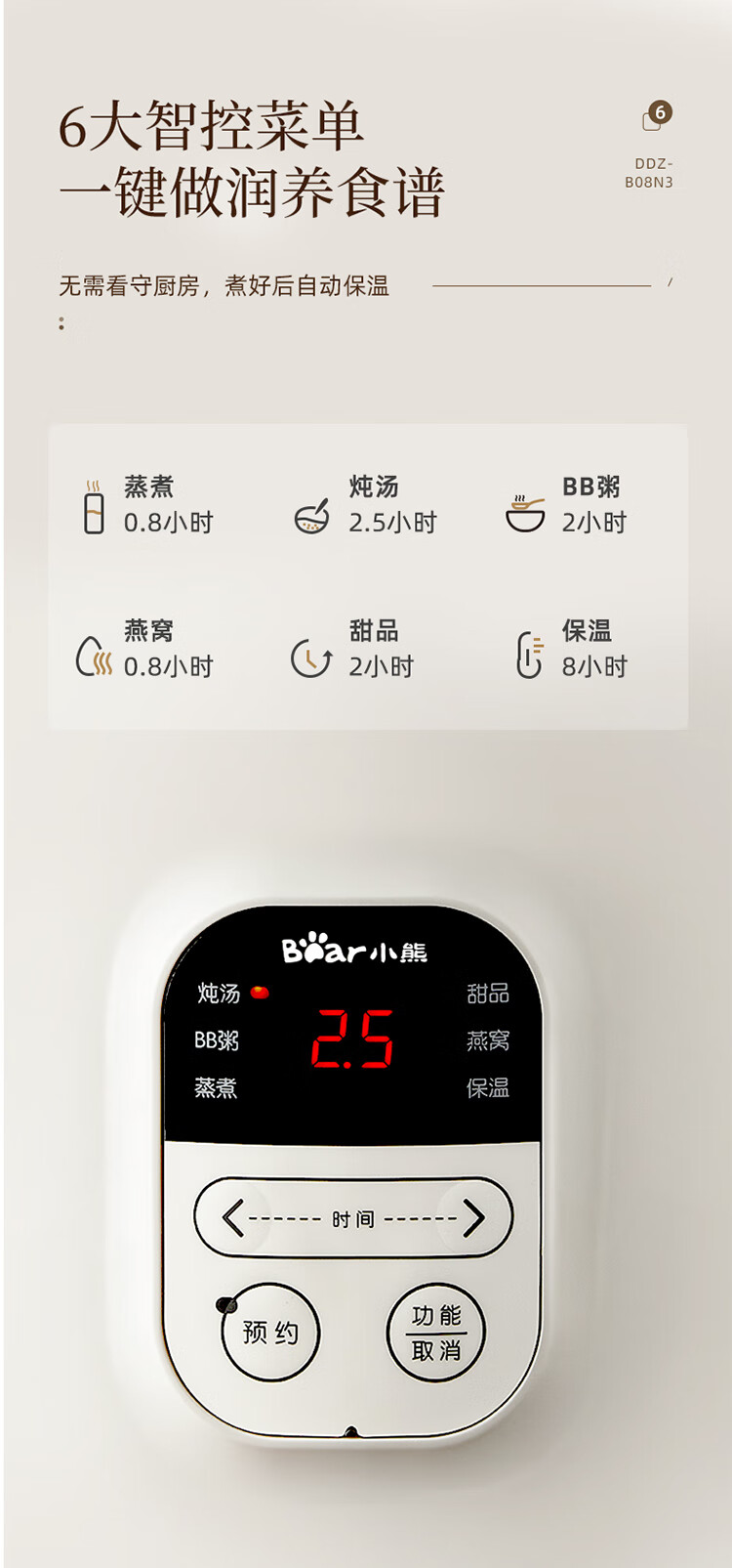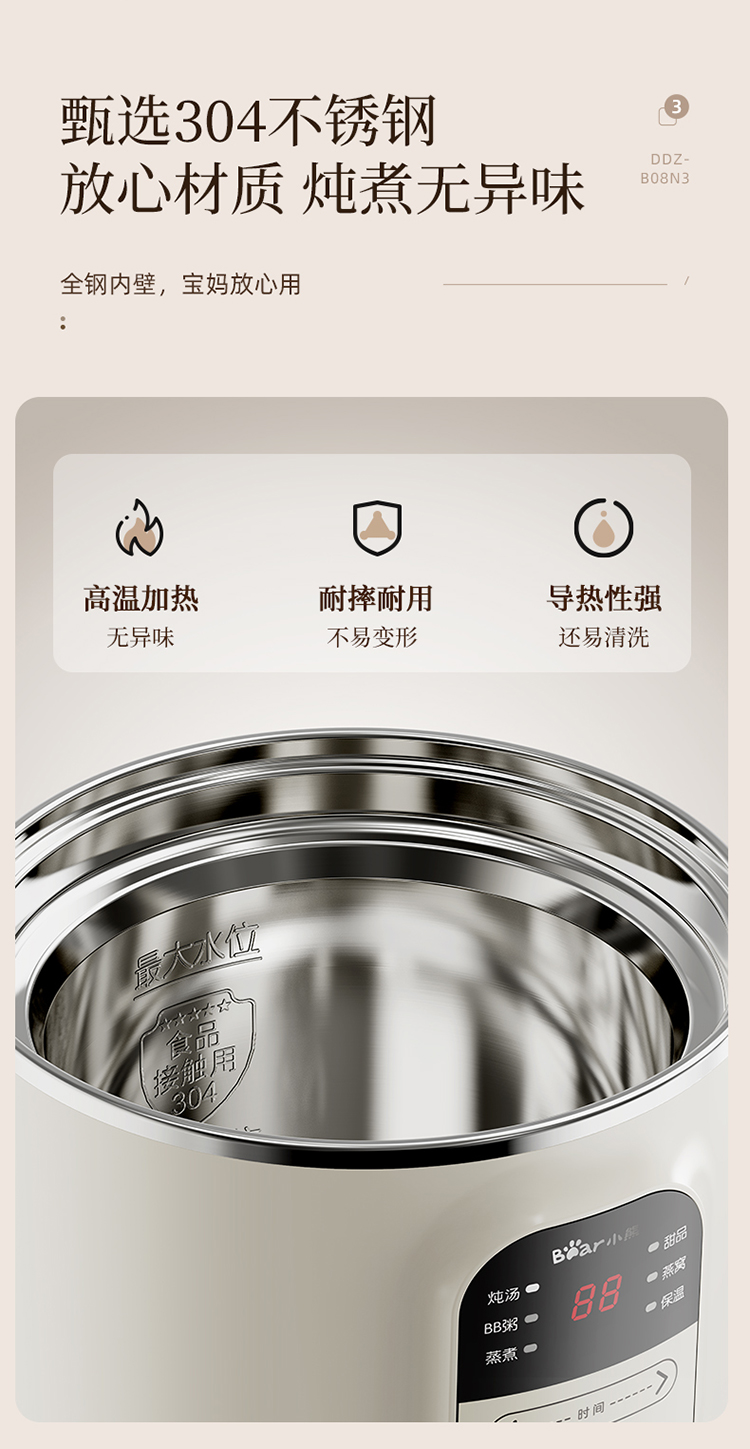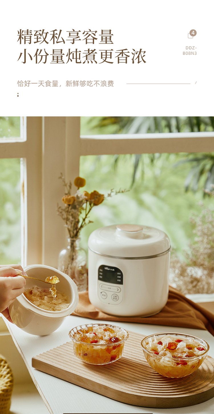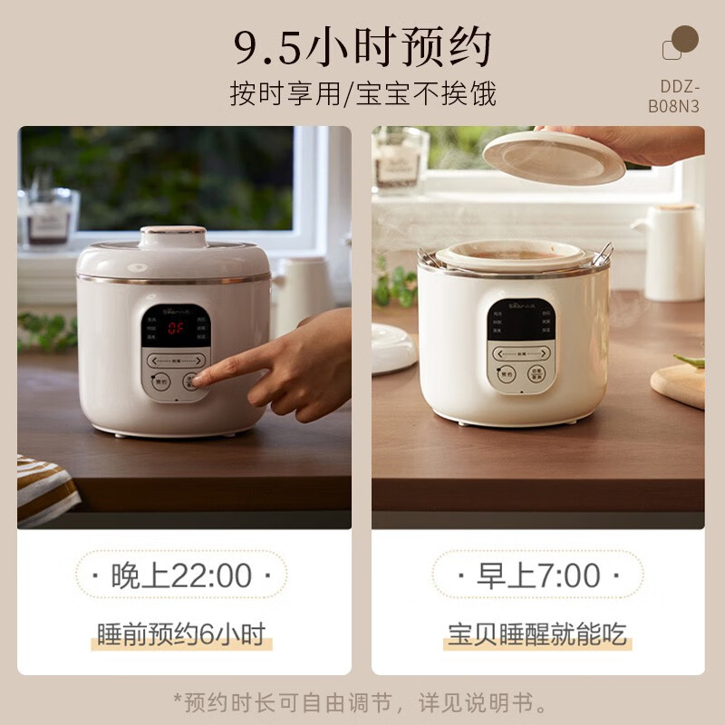 小熊(Bear)电炖盅 电炖锅 燕窝炖盅 宝宝辅食婴儿bb煲迷你煮粥煲汤锅小容量白瓷 DDZ-B08N3 0.8L 自营